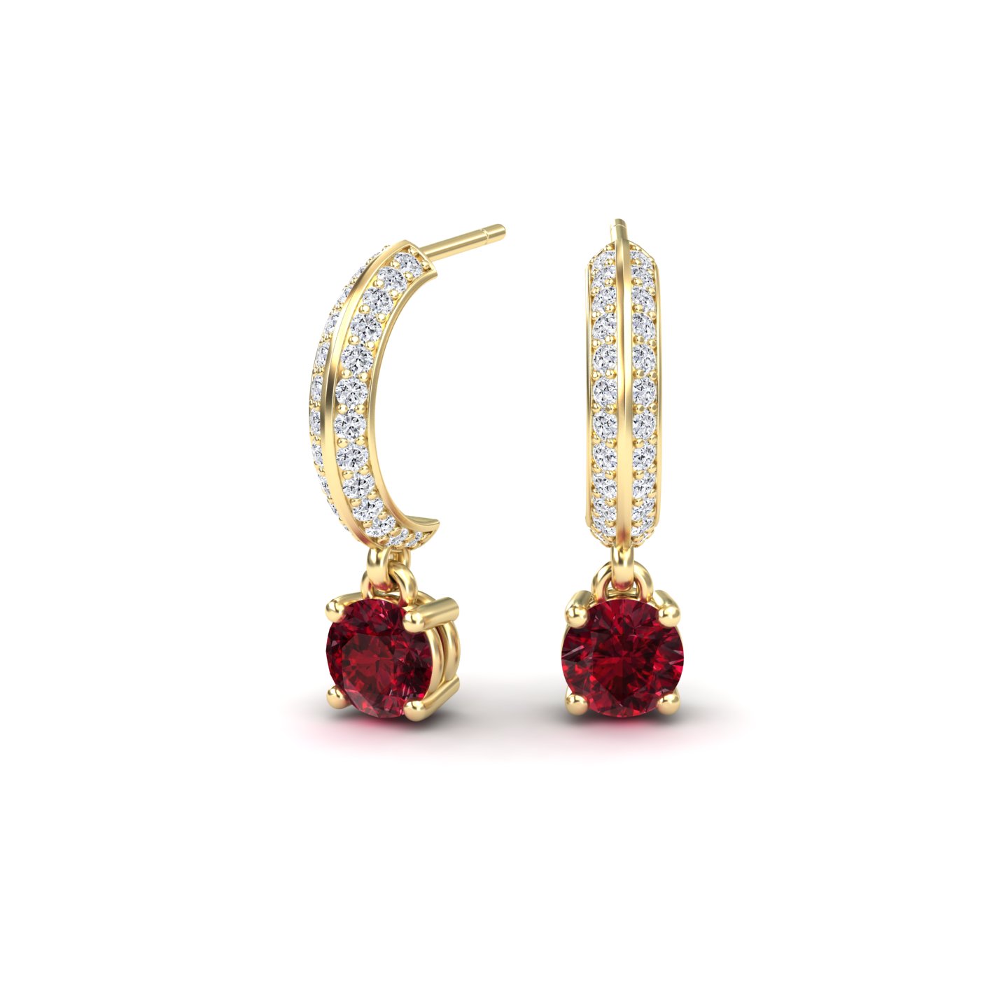 Ruby & Diamond Pavé Drop Hoop Earrings - Serena