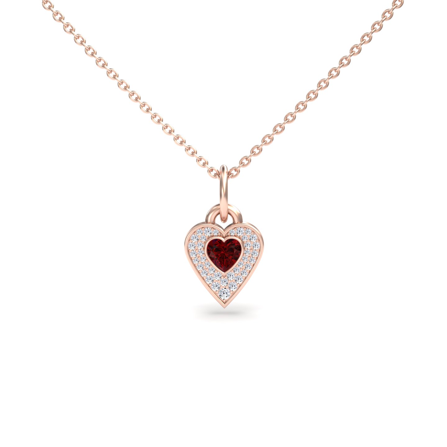 Lab Grown Ruby & White Diamond Heart Necklace - Tara