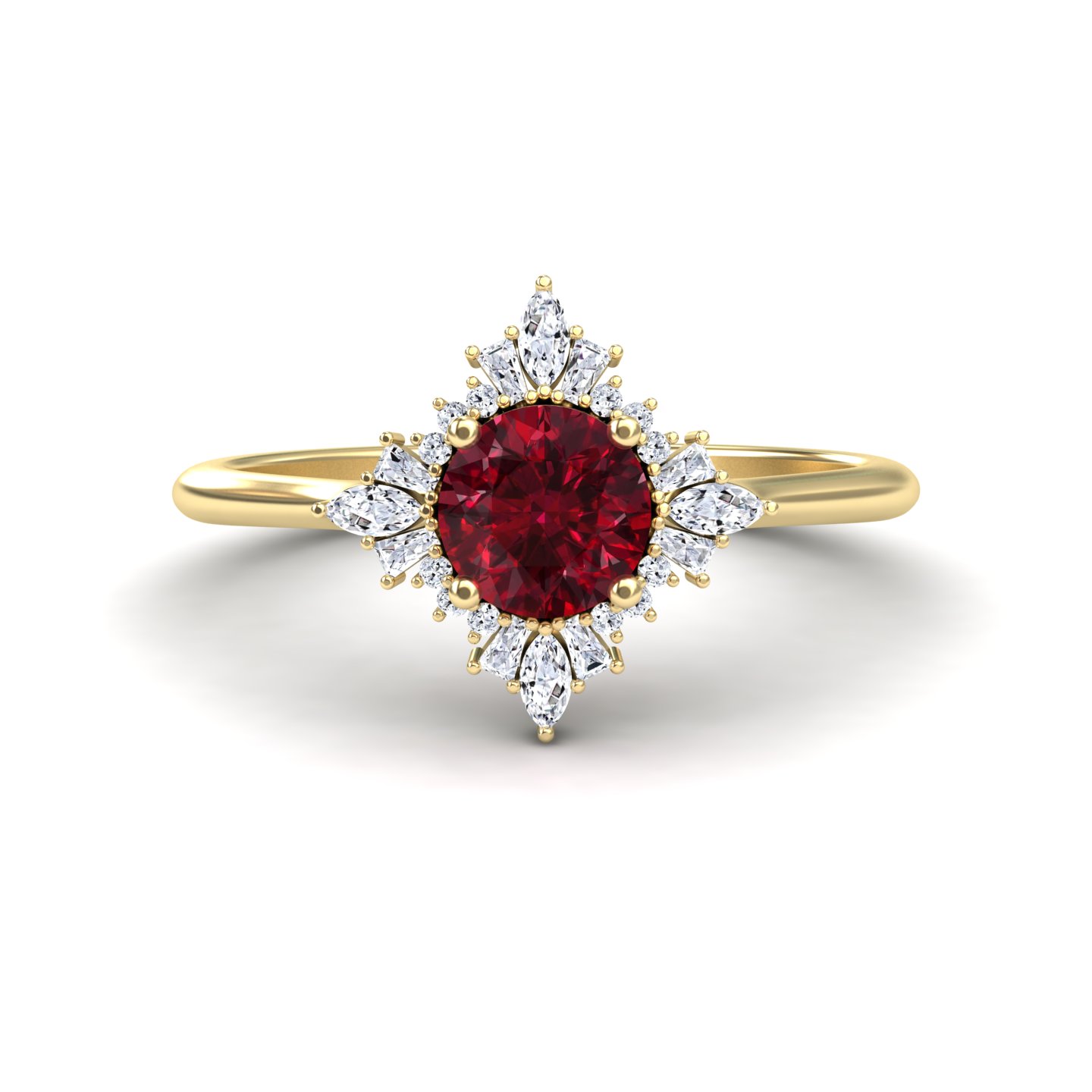 Ruby & Diamond Vintage-Inspired Starburst Ring - Delia