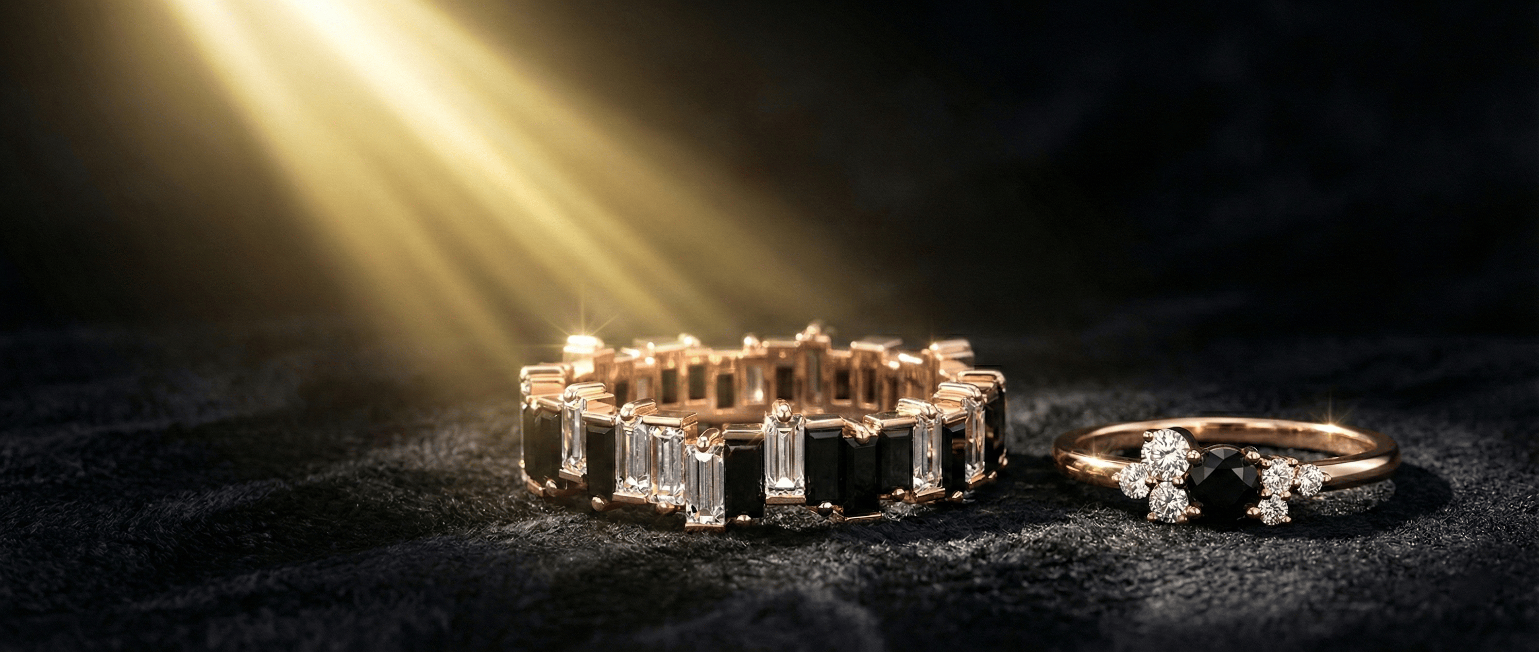 Discover the striking contrast of a black and diamond ring, where bold black diamonds meet the timeless brilliance of white diamonds. Designed for those who appreciate modern elegance with a dramatic edge, these rings offer a distinctive alternative to traditional diamond styles. Our collection features black diamond engagement rings, statement rings, halo settings, vintage-inspired designs, and contemporary minimalist styles crafted in yellow gold, white gold, rose gold, and platinum. The deep intensity of black diamonds paired with sparkling white diamonds creates a powerful and sophisticated look suitable for engagements, anniversaries, or everyday luxury. Each black and diamond ring is carefully crafted for durability, brilliance, and refined style, making it a perfect choice for those who value individuality and elegance.