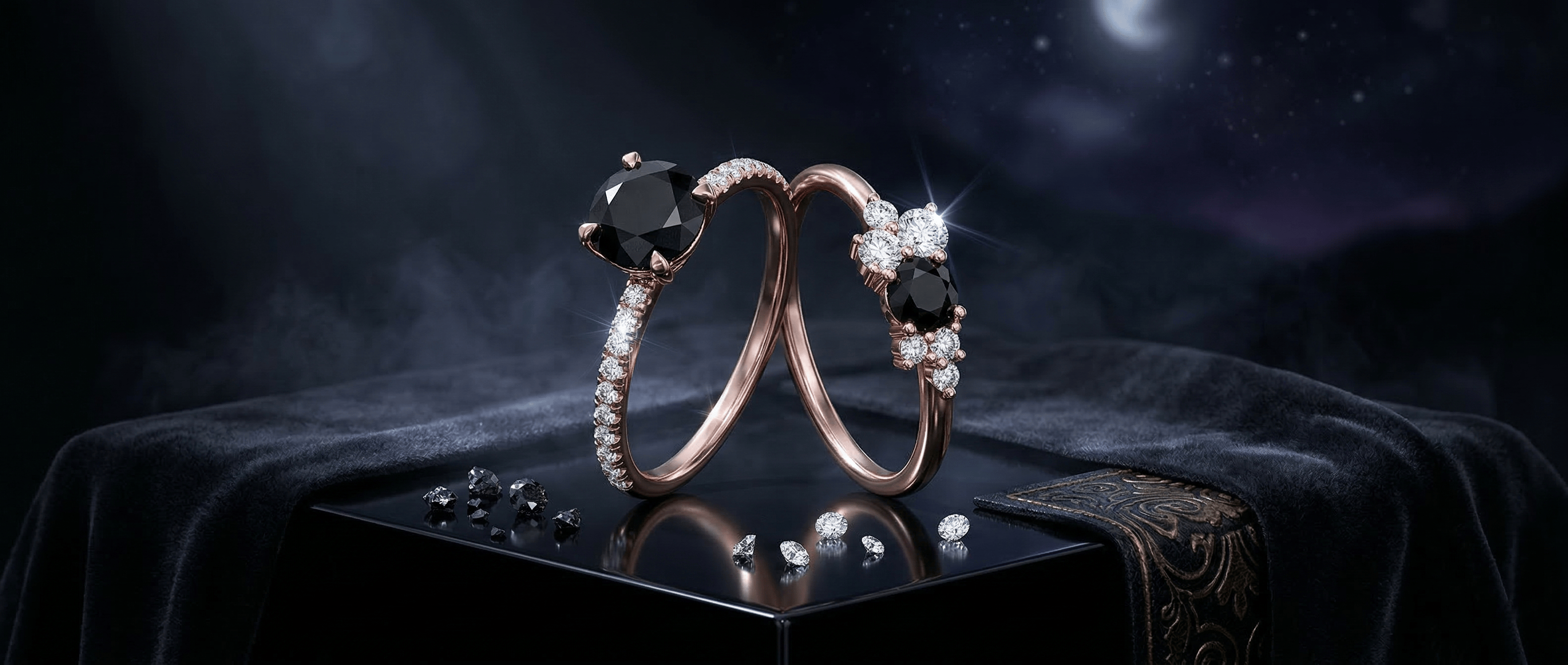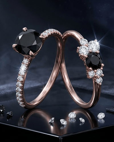 White gold sharpens the contrast against a black diamond, creating a graphic, high-fashion pairing that suits minimalist and editorial aesthetics. Yellow gold softens the look, pulling warmth into the palette and giving the ring a more organic, artisan quality that reads less severe and more soulful. Rose gold sits between the two, adding a romantic flush that makes the black diamond's depth feel warmer and more intimate, which is why it appears frequently in black diamond proposal rings chosen for softer, more romantic personalities. Blackened gold is the most committed choice, eliminating contrast entirely for a ring that is completely dark and deliberately unconventional.