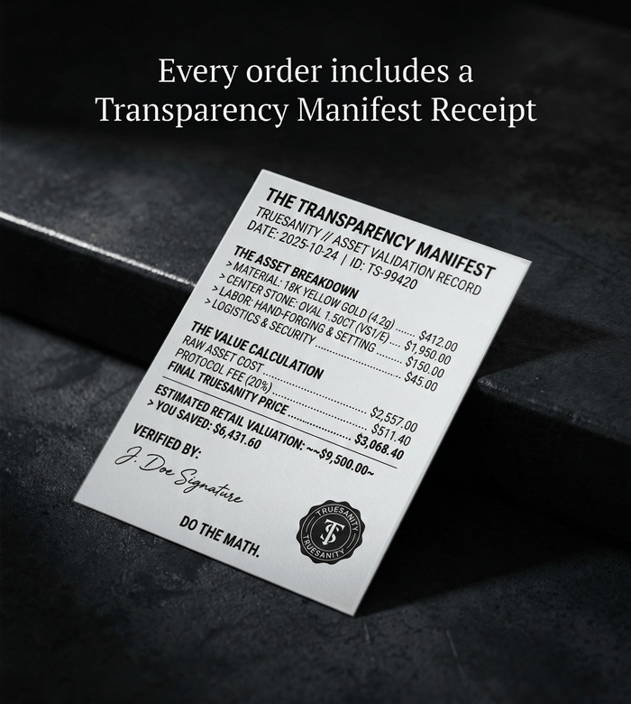 Emerald quality is graded on color saturation, clarity, and origin, with deep green Colombian stones sitting at the top end. Cut affects how light moves through the stone: oval and round cuts maximize brilliance, while an emerald cut emphasizes the color field. Carat matters less than you'd expect when the saturation is strong, a well-cut 0.5ct emerald with vivid color outperforms a pale 1.5ct stone every time. TrueSanity's Transparency Manifest gives you all of this information upfront, so you buy with full knowledge of what you're getting.