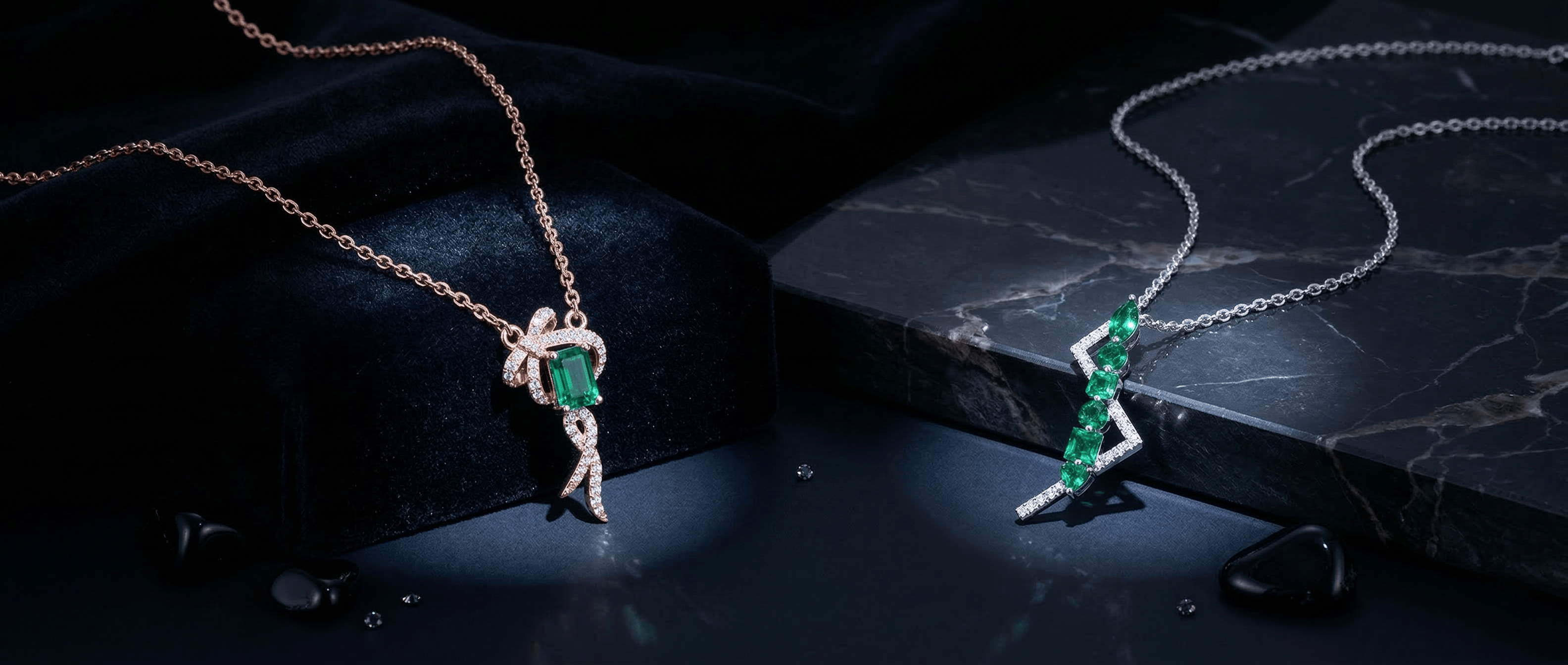 Designer emerald necklaces combine exceptional craftsmanship with the timeless beauty of emerald gemstones. Known for their rich green color and captivating brilliance, emeralds become even more striking when set in carefully designed jewelry pieces created by skilled artisans. This collection features luxury emerald pendants, emerald and diamond necklaces, and modern artistic designs that highlight the elegance of fine jewelry. Crafted in premium metals such as yellow gold, white gold, rose gold, and platinum, each necklace reflects attention to detail and sophisticated design. Whether you prefer contemporary statement pieces or refined classic styles, designer emerald necklaces offer a unique blend of creativity, luxury, and timeless elegance perfect for collectors and lovers of distinctive jewelry.