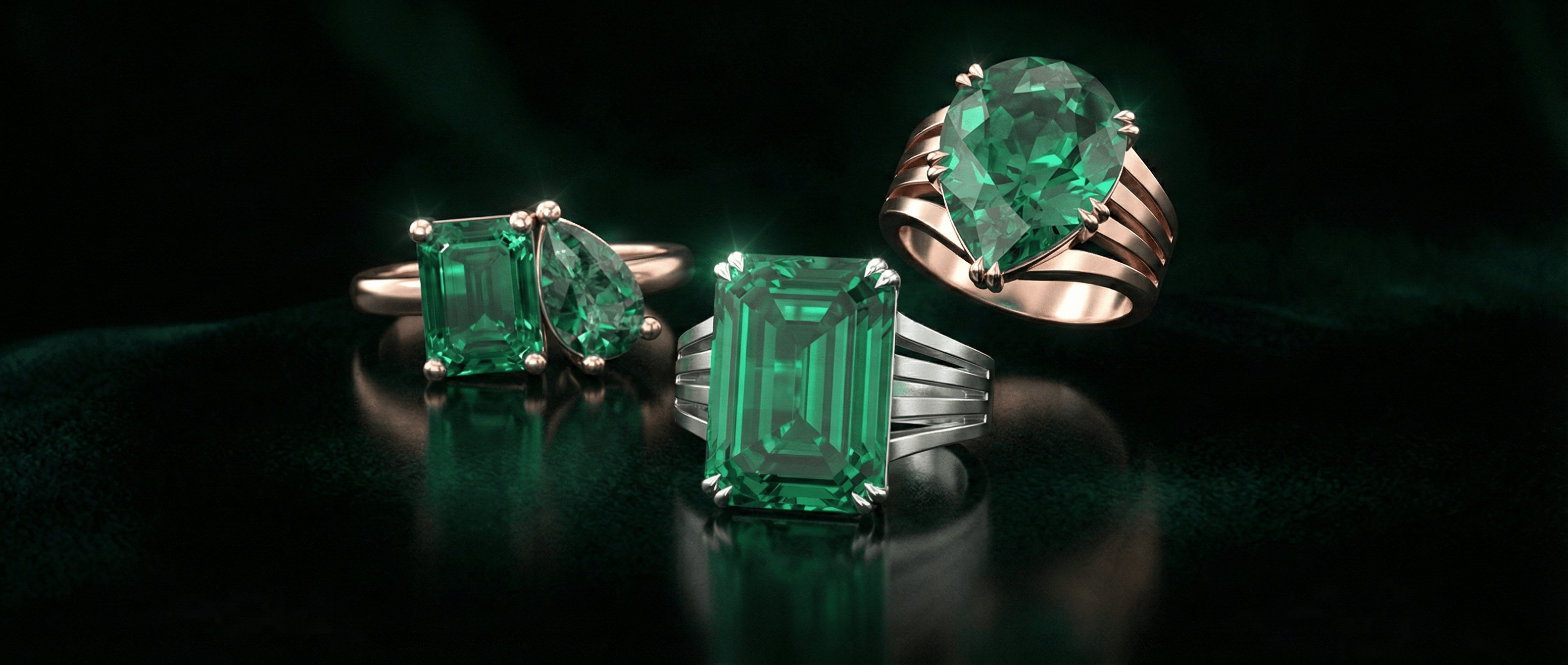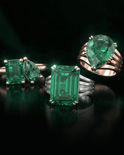 Green Simulated Emerald Rings in Gold & Silver