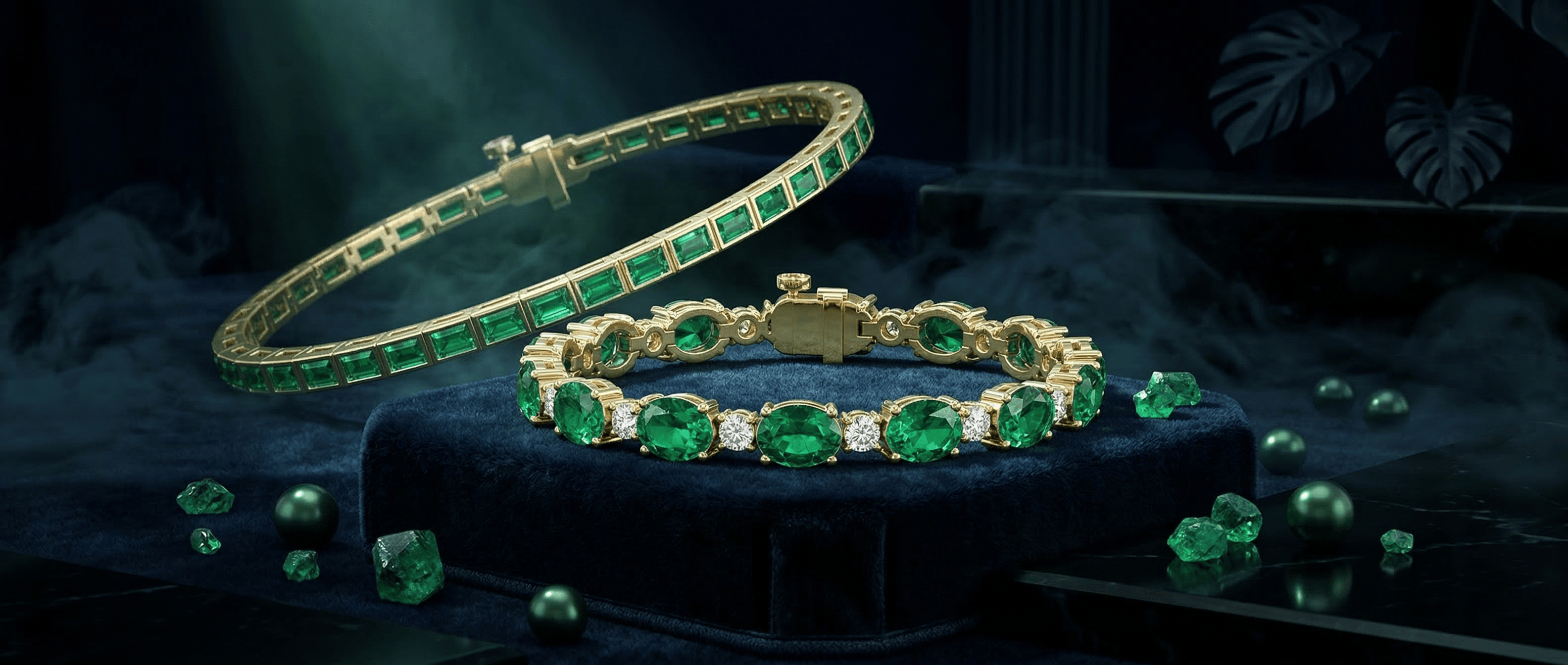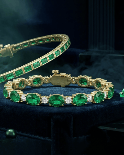 Lab created emerald bracelets offer the captivating beauty of emerald gemstones with the innovation of modern gemstone technology. Lab grown emeralds share the same chemical composition, color, and brilliance as natural emeralds, making them a beautiful and more accessible choice for fine jewelry. This collection features elegant lab emerald bracelet designs, including minimalist gemstone styles, emerald and diamond bracelets, and modern everyday jewelry pieces. Crafted in high-quality metals such as yellow gold, white gold, rose gold, and sterling silver, each bracelet highlights the vibrant green color of lab created emerald gemstones. Perfect for everyday elegance, meaningful gifts, or sustainable jewelry lovers, lab created emerald bracelets combine timeless gemstone beauty with contemporary craftsmanship and responsible sourcing.