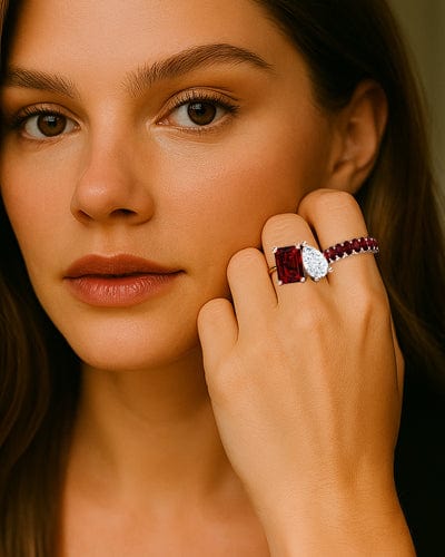 Discover the captivating allure of our Ruby Rings collection. Each piece features vibrant rubies set in elegant designs, perfect for adding a touch of luxury and color to any look.