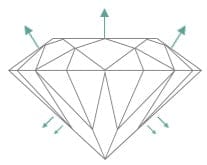 The ratio of a diamond's TABLE, DEPTH, and WIDTH has a large impact on cut grade.