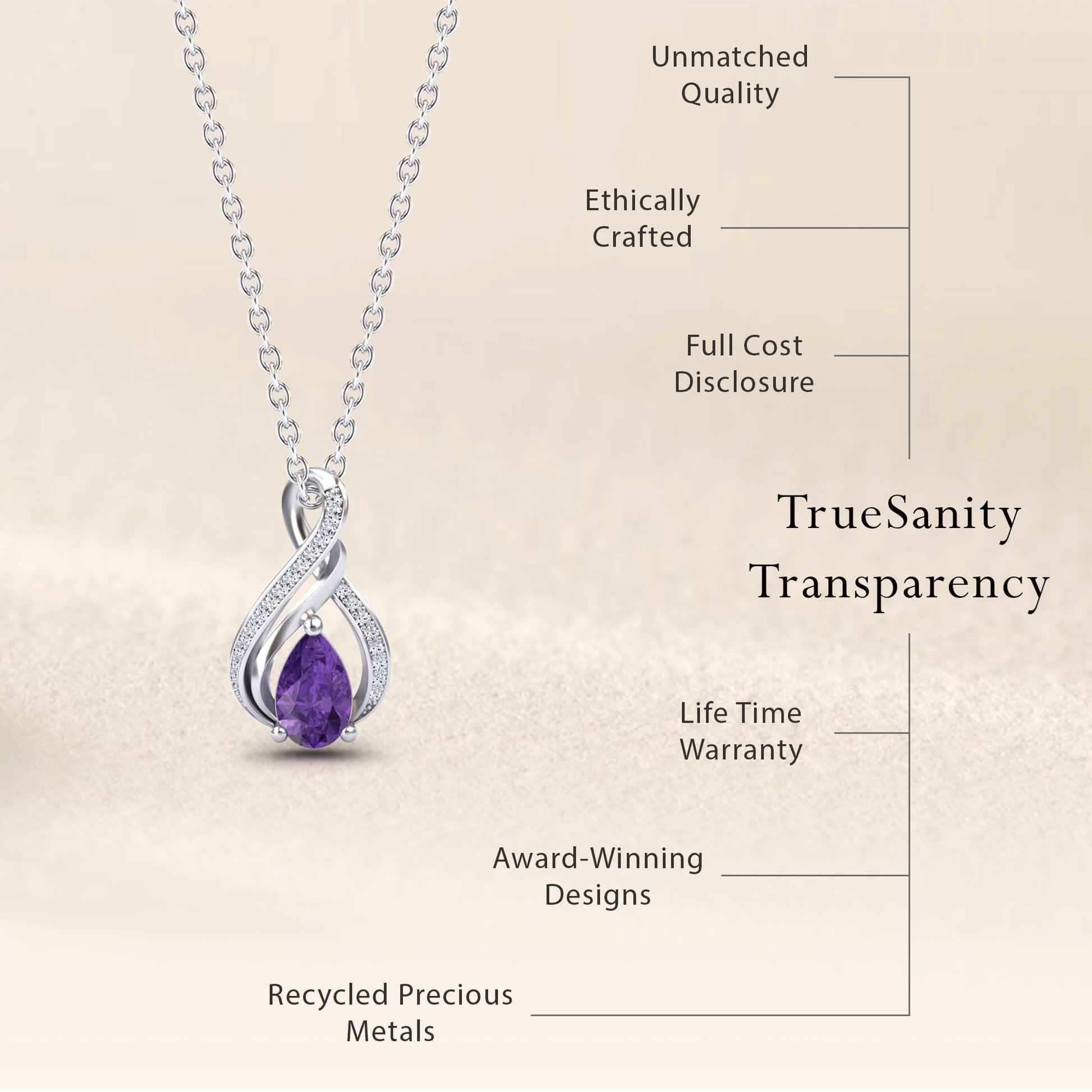 Amethyst & Diamond Infinity Twist Necklace - Maddison