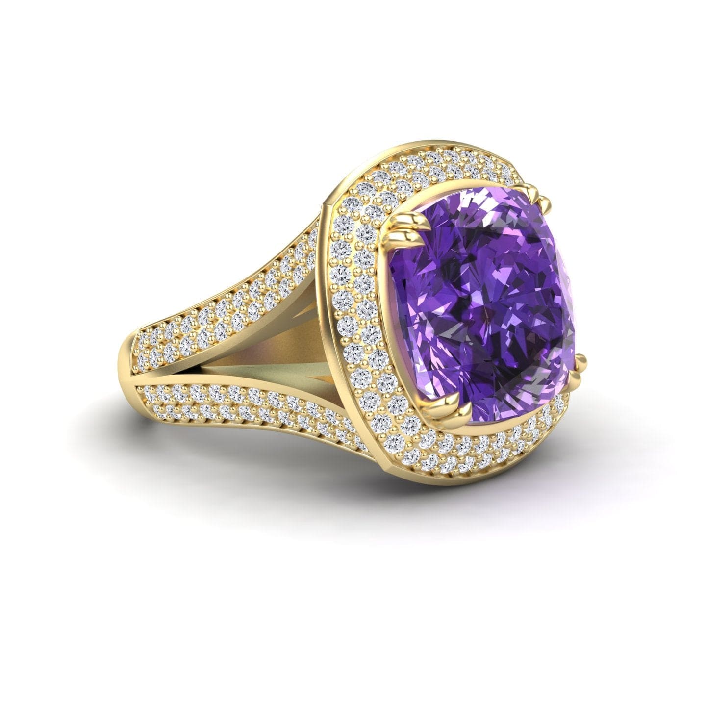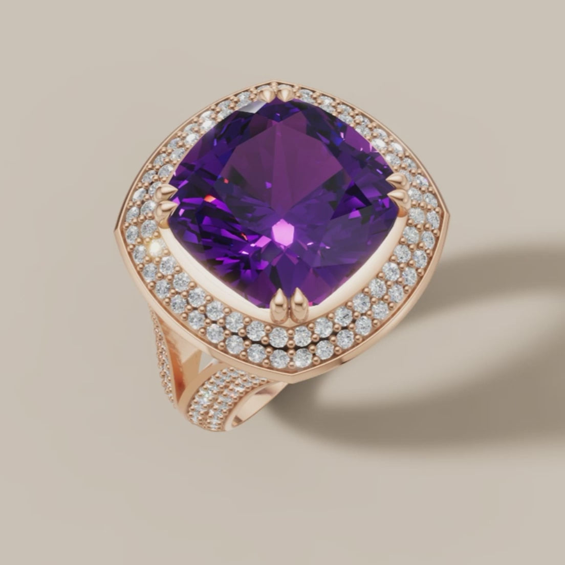 Amethyst & Diamond Halo Statement Ring - Pooja