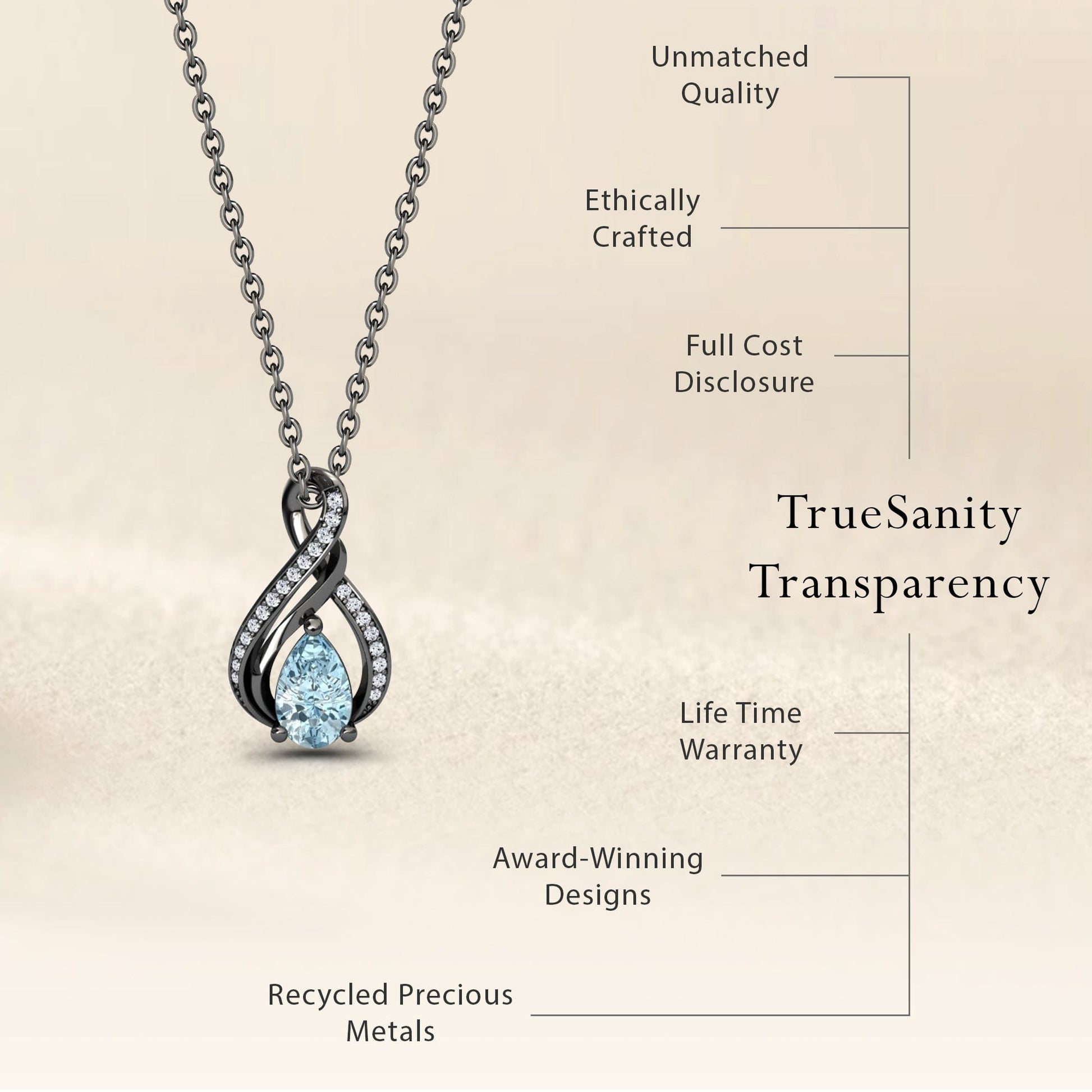 Delicate and enchanting, the Aquamarine & Diamond Infinity Twist Necklace - Maddison showcases a mesmerizing pear-shaped aquamarine, elegantly wrapped in a sparkling diamond-accented infinity design. Symbolizing serenity and timeless elegance, this pendant is available in White Gold, Rose Gold, Yellow Gold, and Blackened Gold, making it a perfect gift or a treasured addition to any jewelry collection.
