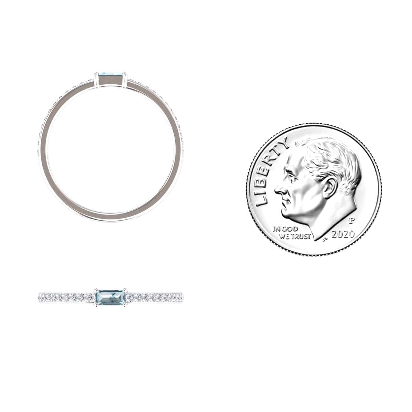 Elegant and timeless, the Aquamarine & Diamond Pave Ring - Dia features a stunning baguette-cut aquamarine at its center, set within a shimmering diamond pave band. Designed for effortless sophistication, this exquisite ring is available in white gold, rose gold, yellow gold, and blackened gold, making it the perfect choice for a modern engagement ring or a stylish statement piece.