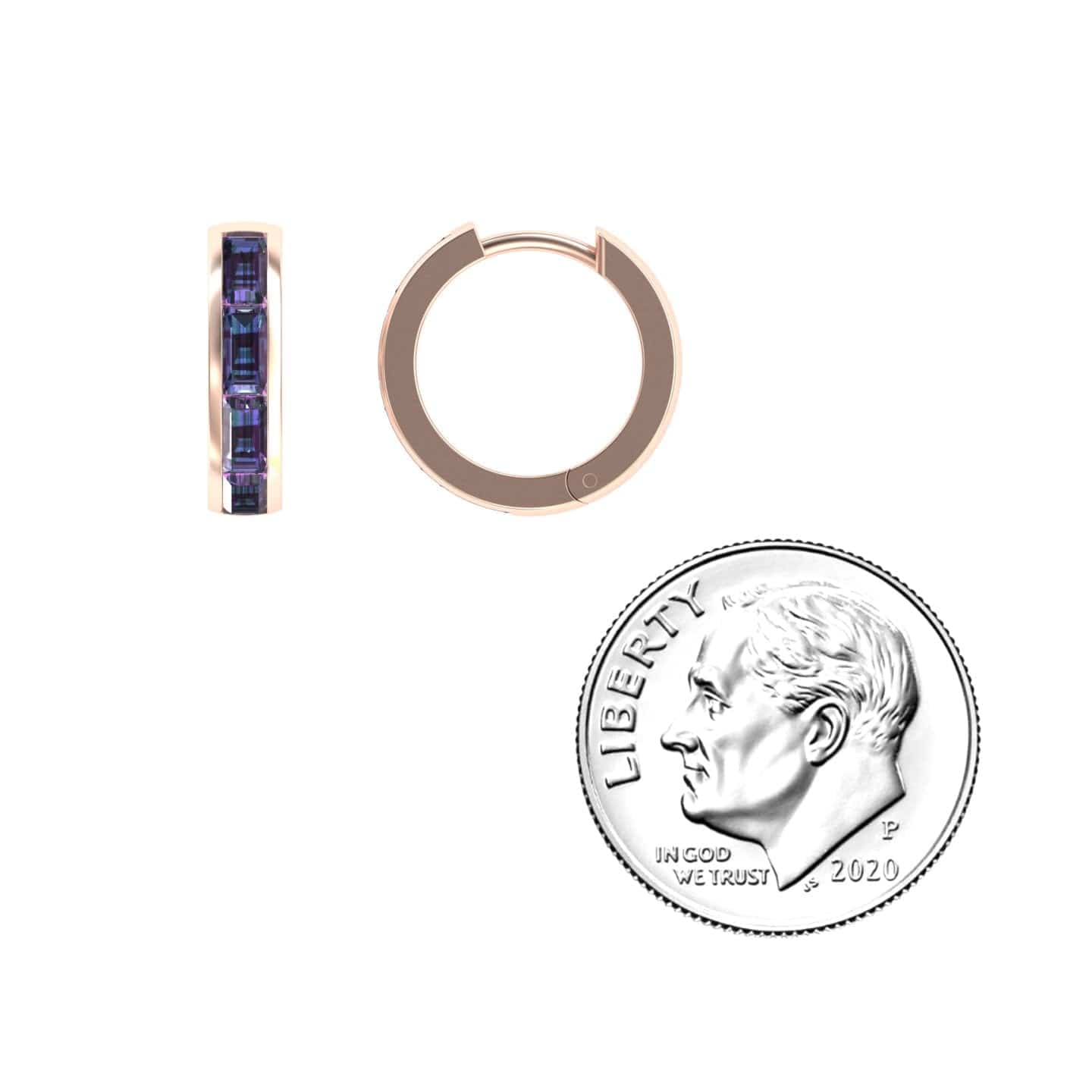 Lab Grown Alexandrite Channel-Set Baguette Hoop Earrings - Vera