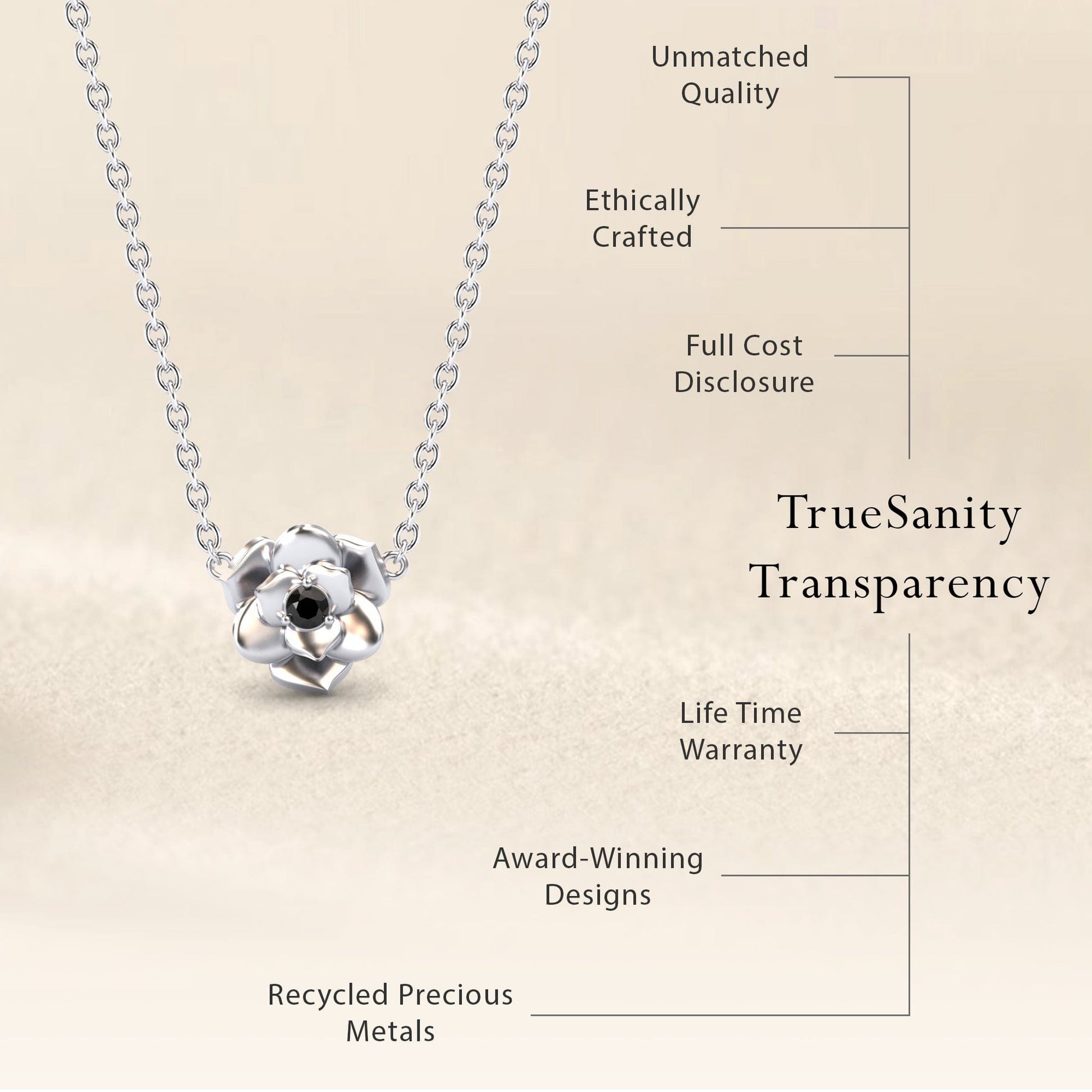Legal Disclaimer: The information regarding our costing, material sourcing, craftsmanship, and other operational details is provided for transparency purposes only. While True Sanity strives for utmost accuracy and diligently verifies all data, this information is not intended as a legally binding representation or warranty. Market prices for precious metals (including gold) and diamonds are subject to significant and rapid fluctuations, which are beyond our control. All cost breakdowns and appraisals are based on market conditions at the time of calculation. Furthermore, despite rigorous quality control and data verification processes, human error remains a possibility. True Sanity reserves the right to correct any errors, inaccuracies, or omissions, and we will do so promptly upon identification. This disclosure does not create any contractual obligations beyond those expressly set forth in our official terms of sale, warranty, and return policies. Your use of our website and purchase of our products are subject to our full Terms and Conditions.
