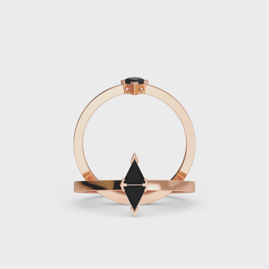 Bold and modern, the Black Diamond Triangle Statement Ring - Shalini is designed to stand out. Featuring two striking triangle-cut black diamonds, this edgy yet elegant piece is set in solid 14K gold, available in white gold, rose gold, yellow gold, and blackened gold. A must-have for those who love geometric designs and contemporary luxury, this ring adds a touch of mystery and sophistication to any look.