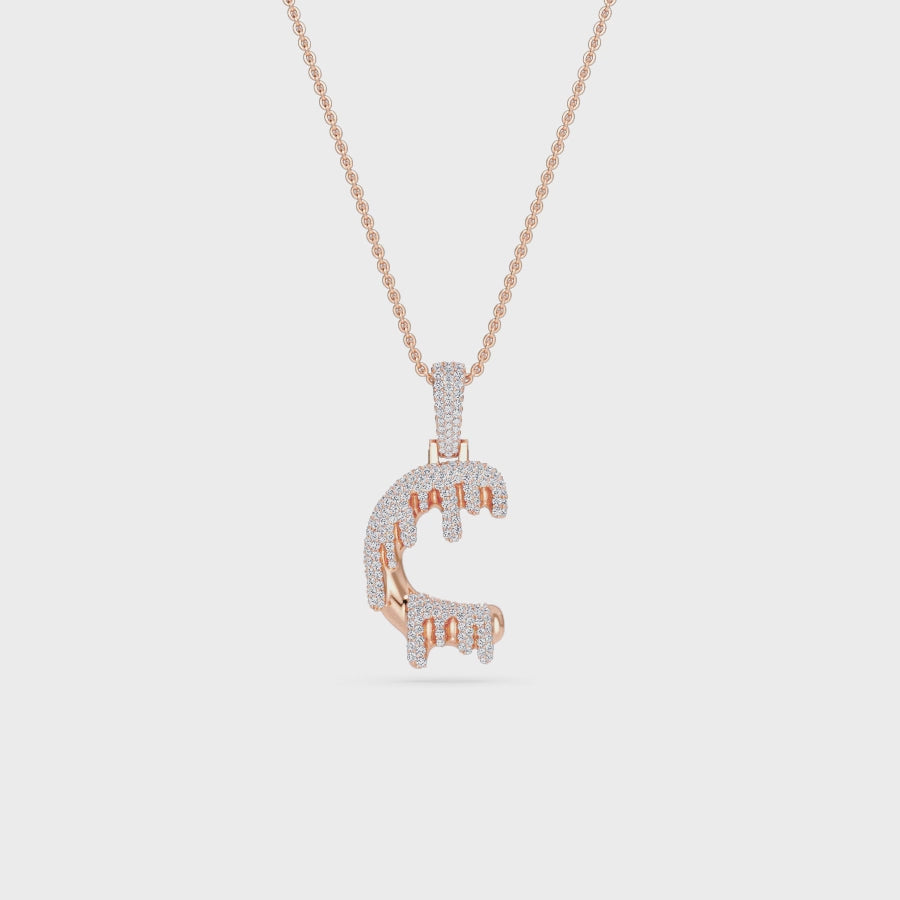 C Initial Dripping Diamond Pendant Necklace - Carter