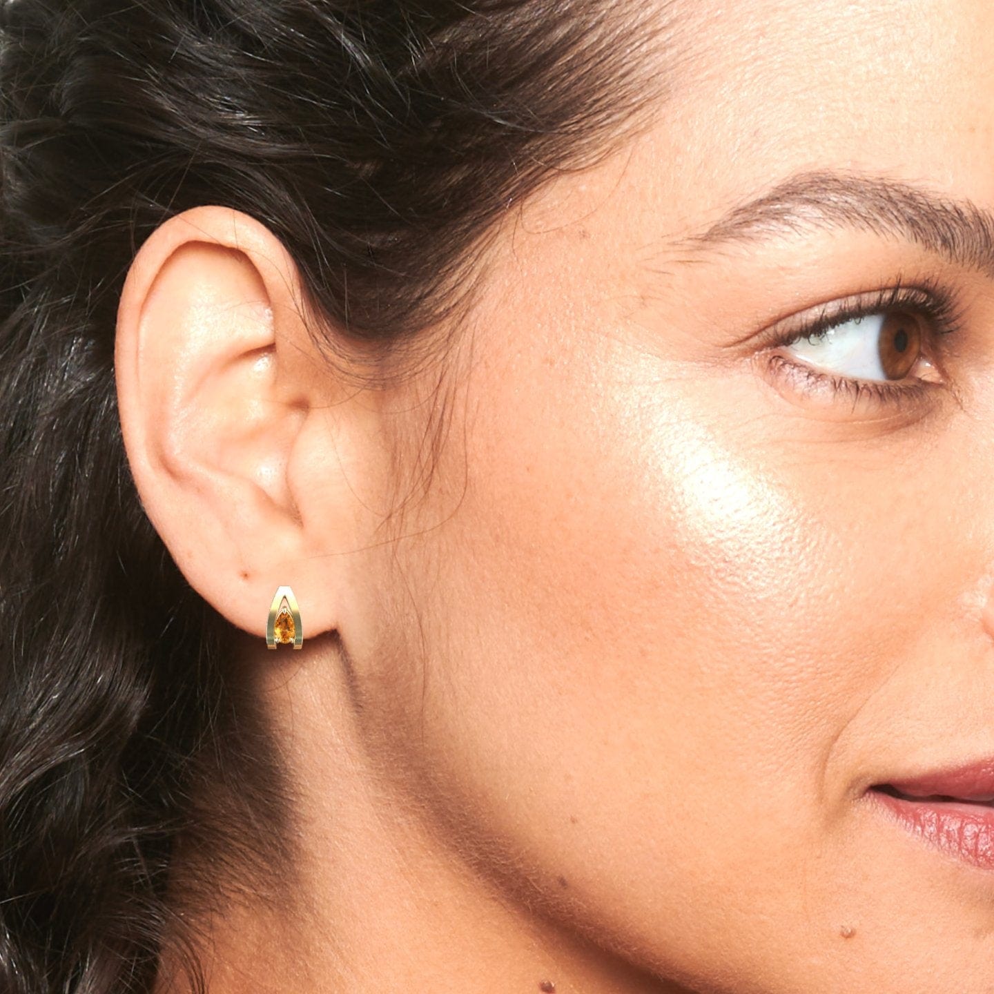 Add a pop of warmth to your jewelry collection with the Citrine Huggie Earrings - Yamini, featuring vibrant citrine gemstones that radiate a golden, sun-kissed glow. These chic huggie earrings are designed to hug your earlobe comfortably, offering a stylish yet subtle touch of sophistication. Whether you're dressing up for a special event or adding a dash of color to your everyday look, these earrings are available in White Gold, Rose Gold, Yellow Gold, and Blackened Gold to suit your personal style.