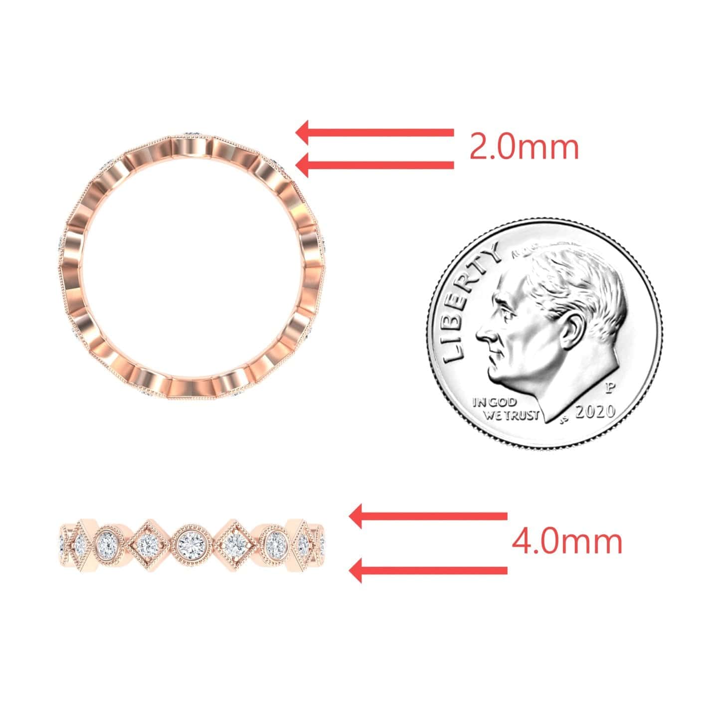 The Diamond Geometric Eternity Band - Hetal is a timeless expression of brilliance and sophistication. Showcasing a continuous pattern of GH-SI1 diamonds set in an elegant geometric design, this 18K gold eternity band (available in White, Rose, Yellow, and Blackened Gold) exudes modern luxury. Whether worn alone or stacked, it’s a radiant statement of enduring beauty.
