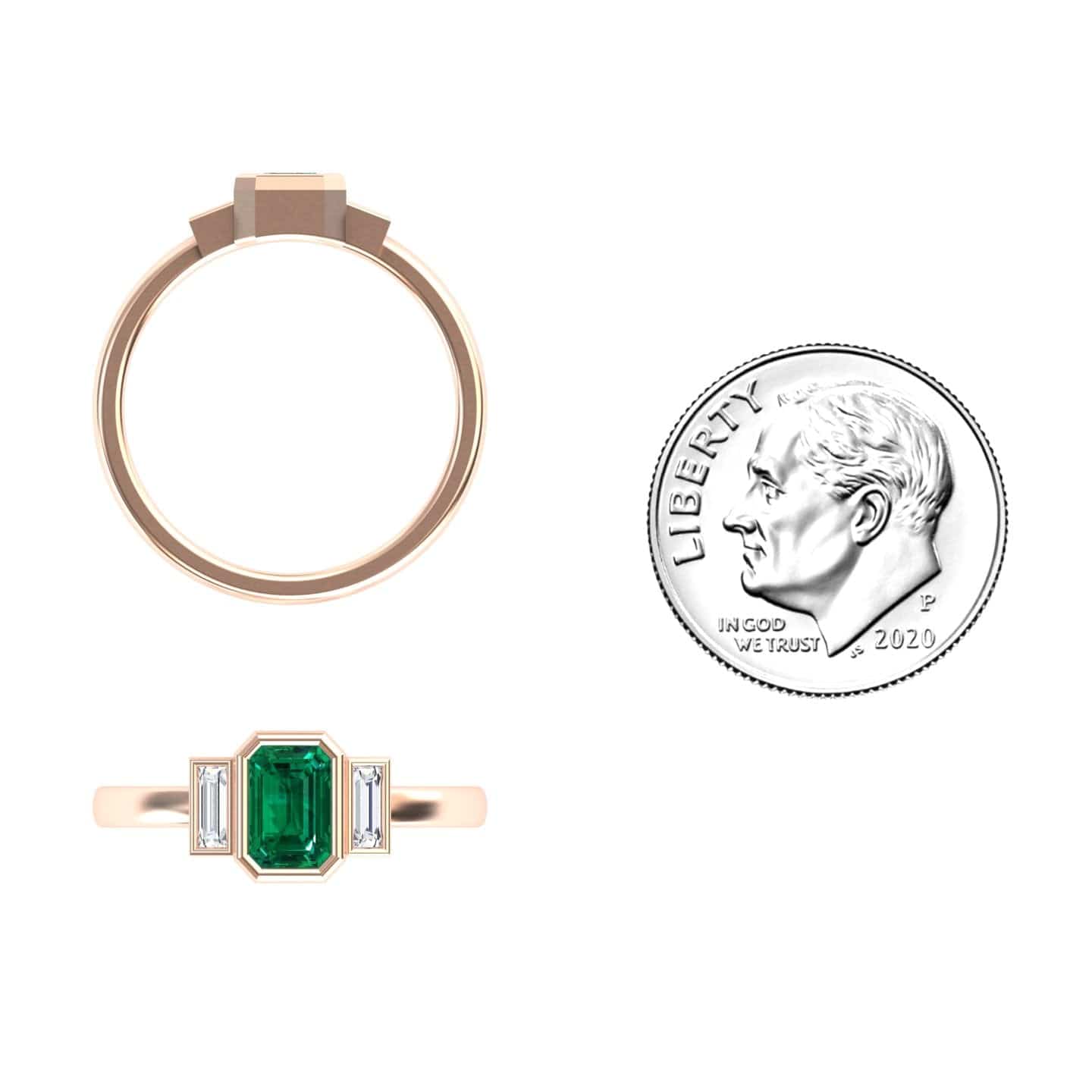 Celebrate timeless glamour with our Emerald & Diamond Three-Stone Art Deco Ring – Ivy. Featuring a vivid emerald flanked by sparkling white diamonds, this vintage-inspired ring channels the elegance of the Art Deco era. Available in your choice of white gold, rose gold, yellow gold, or blackened gold for a truly personalized statement piece.
