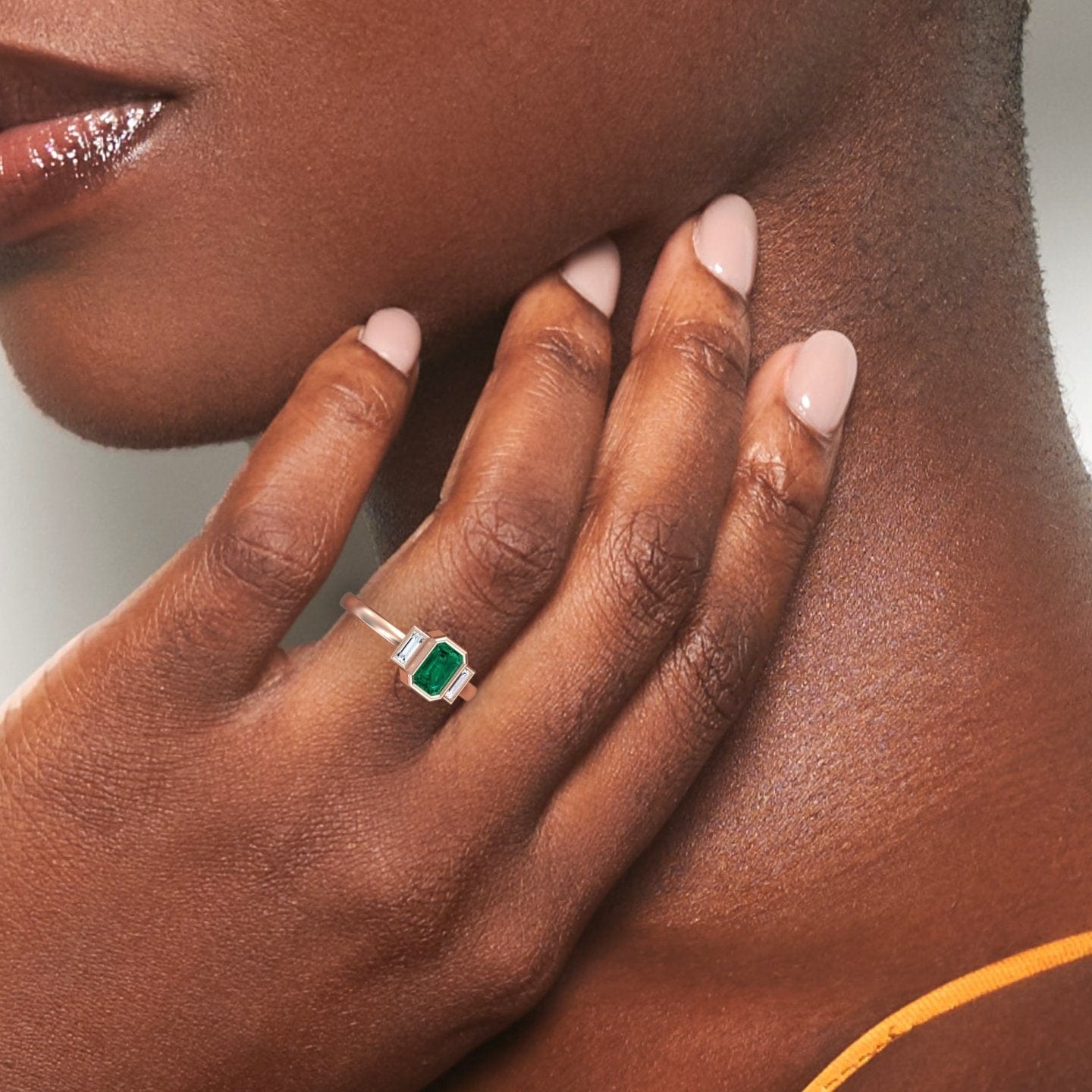 Emerald & Diamond Three-Stone Art Deco Ring - Ivy