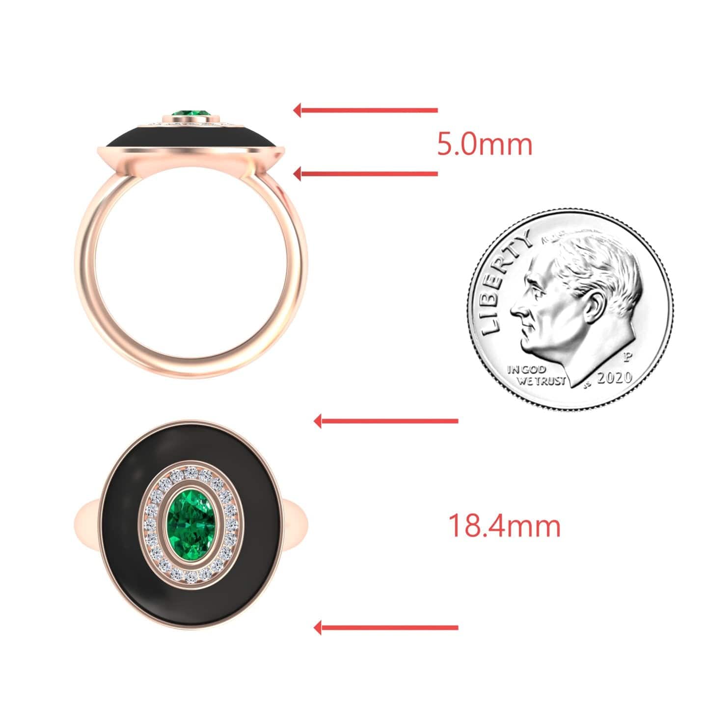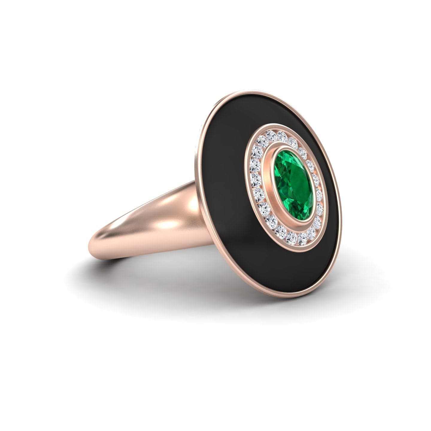 Camille Emerald & Diamond Black Enamel Halo Ring