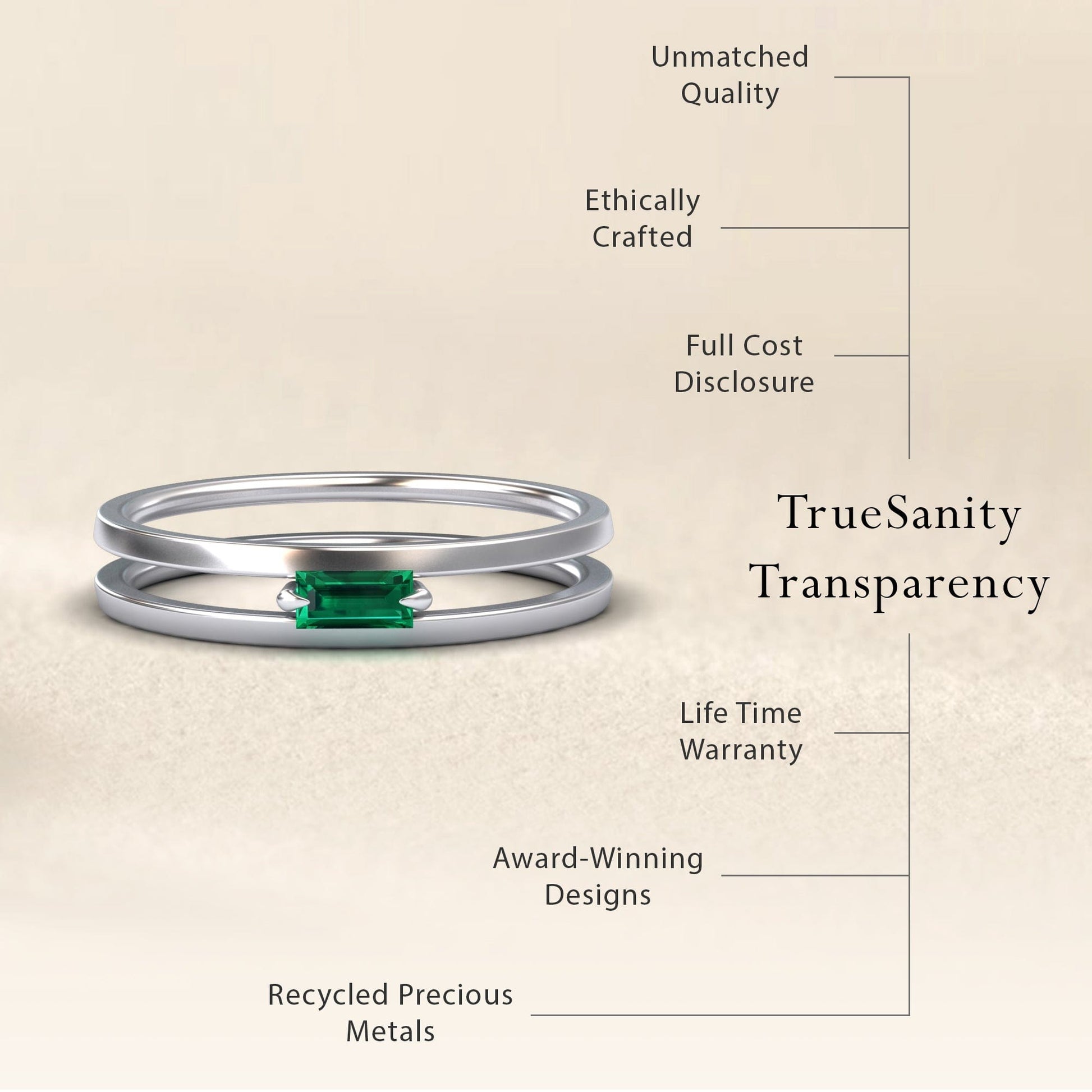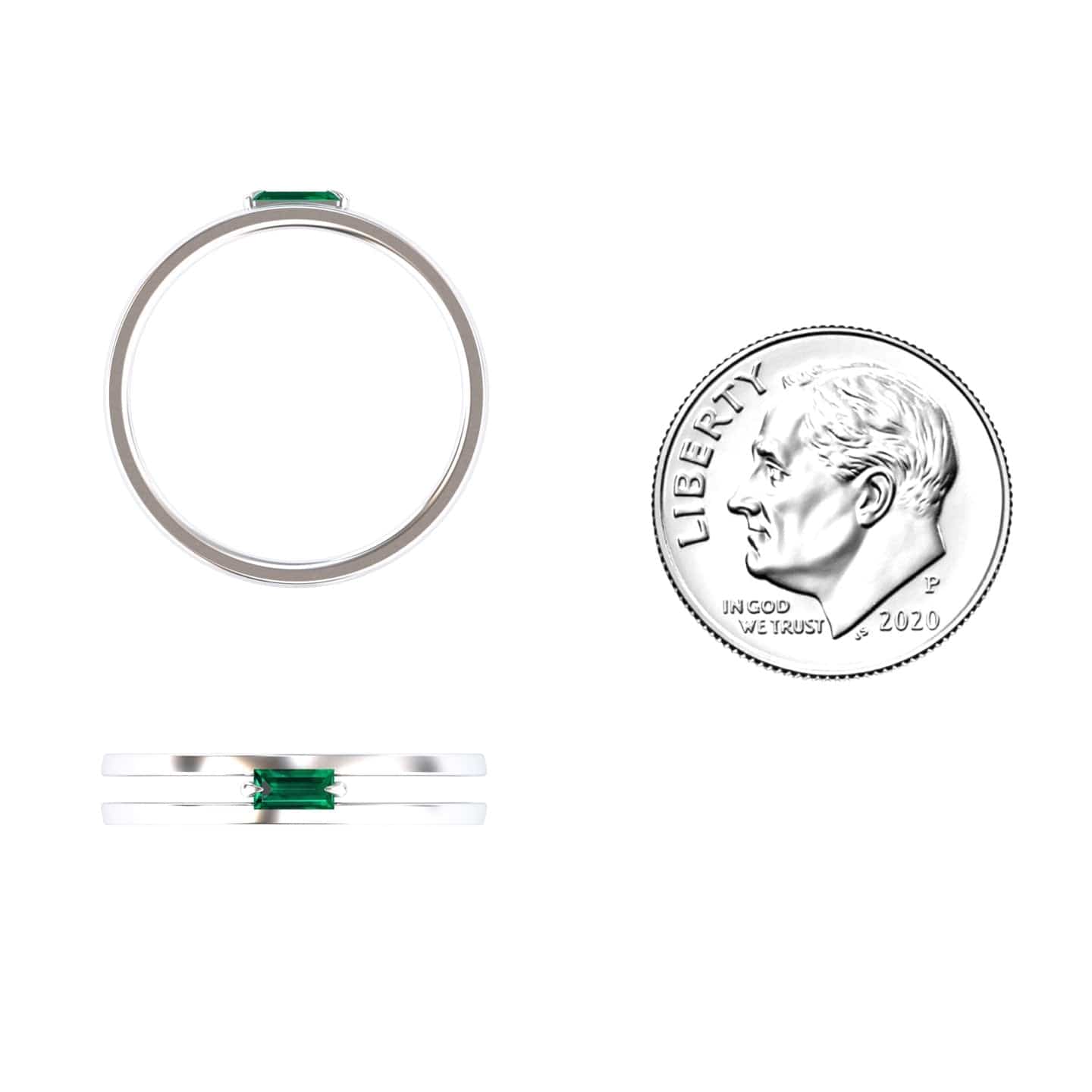 Sleek and modern, the Emerald Minimalist Double Band Ring - Alia features a striking baguette-cut emerald set between two delicate gold bands. Crafted in your choice of 14K White, Rose, Yellow, or Blackened Gold, this contemporary open-band design offers effortless elegance for stacking or wearing solo.