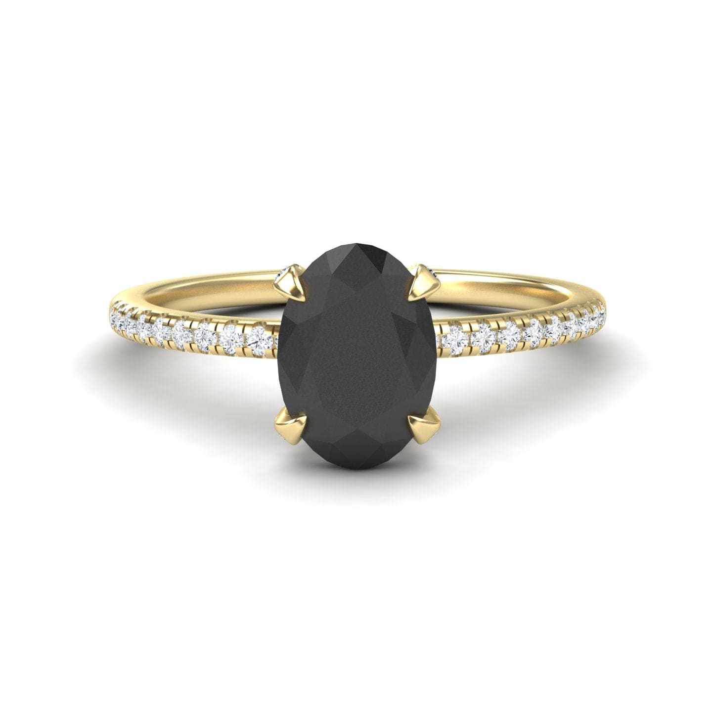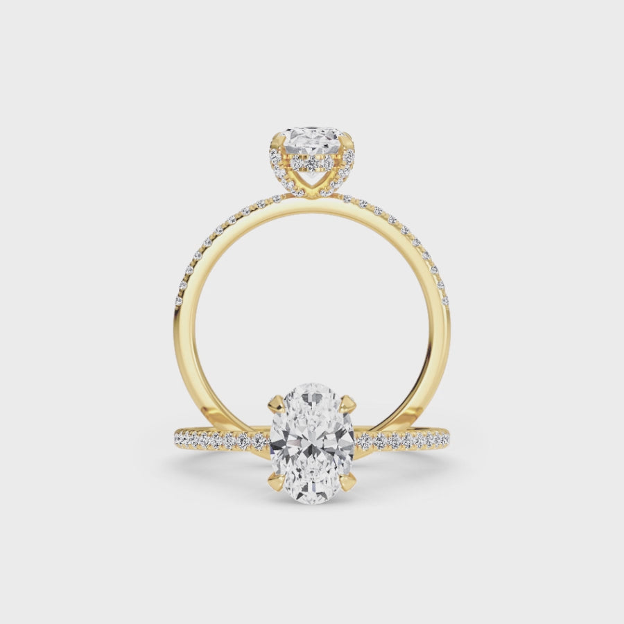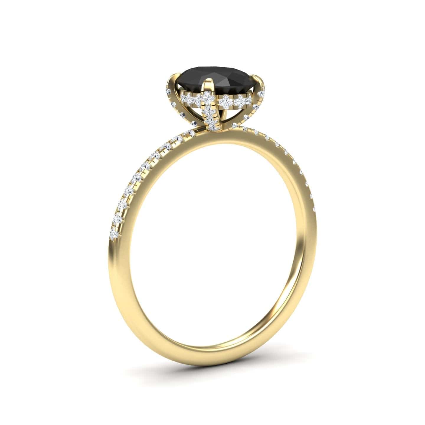 Home / Ready to Ship Engagement Rings / Oval Hidden Halo Certified Natural Black Diamond Pave Engagement Ring - Tamara