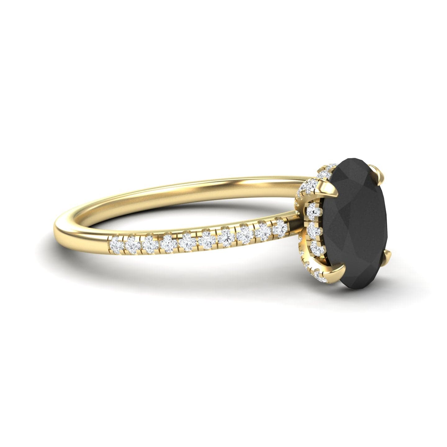 Oval Hidden Halo Certified Natural Black Diamond Pave Engagement Ring - Tamara