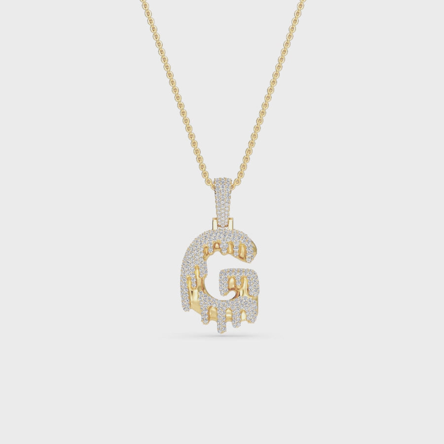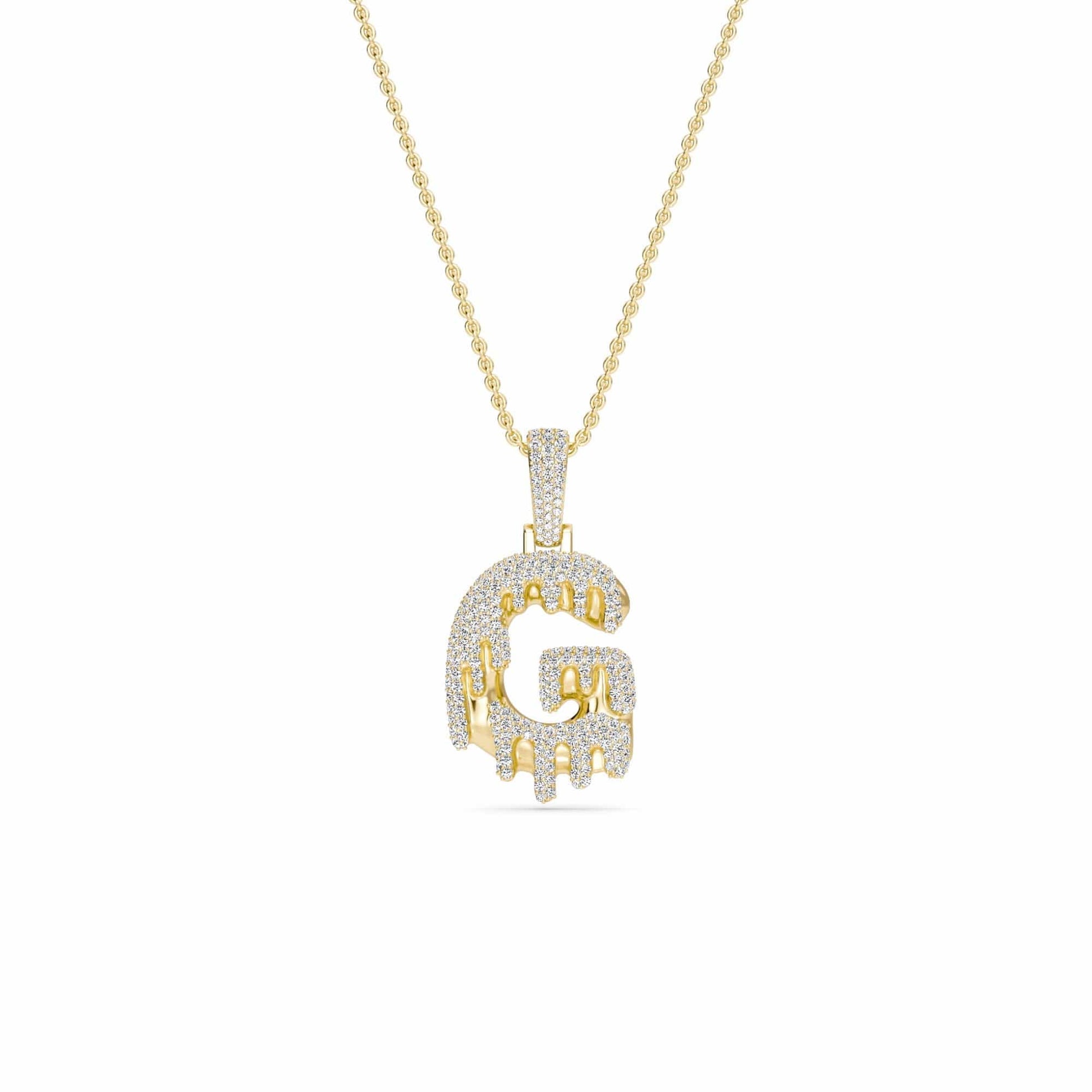 G Initial Dripping Diamond Pendant Necklace - Gabriel