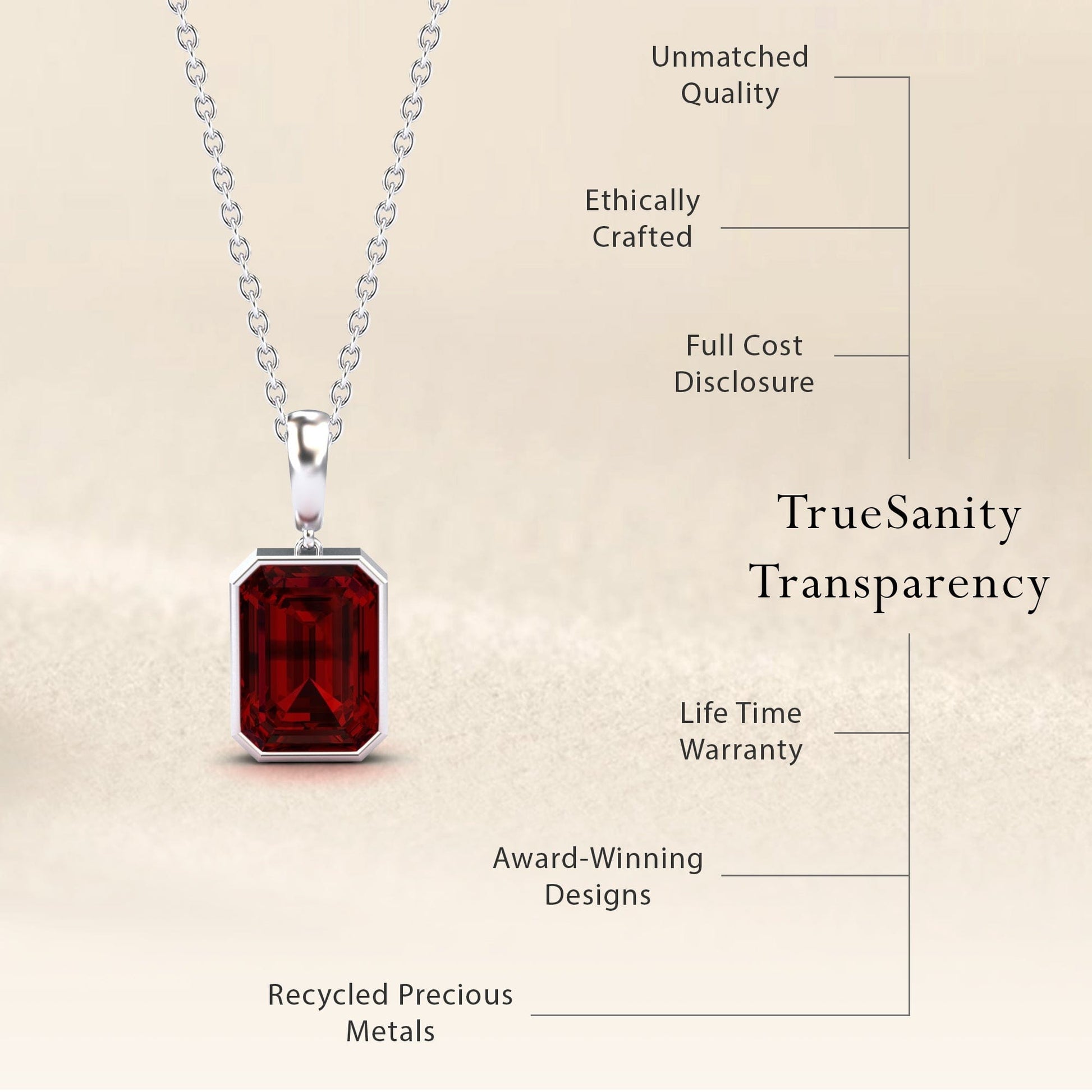 Elevate your elegance with the Garnet Solitaire Necklace - Jovana, featuring a mesmerizing emerald-cut garnet in a timeless bezel setting. Crafted in 14K gold, this refined pendant is available in White Gold, Rose Gold, Yellow Gold, and Blackened Gold, making it the perfect statement of sophistication and passion.