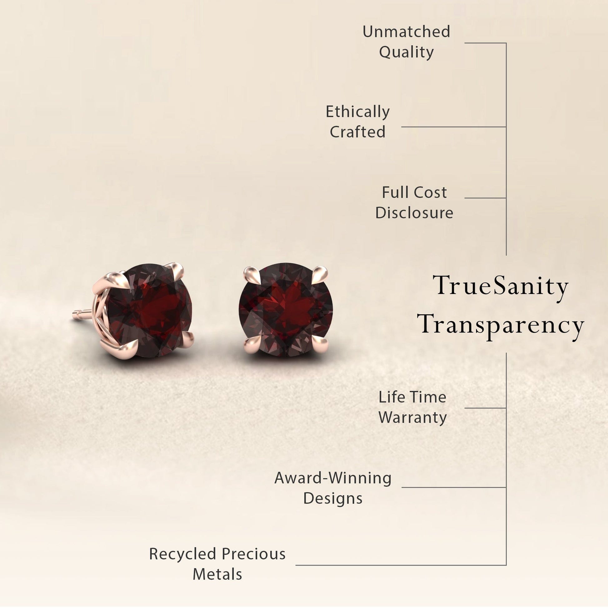 Rich in color and timeless in style, our Garnet Solitaire Stud Earrings – Lucy feature a stunning round-cut garnet that glows with deep red brilliance. Handcrafted in your choice of White Gold, Rose Gold, Yellow Gold, or Blackened Gold, these earrings make the perfect January birthstone gift or everyday luxury.