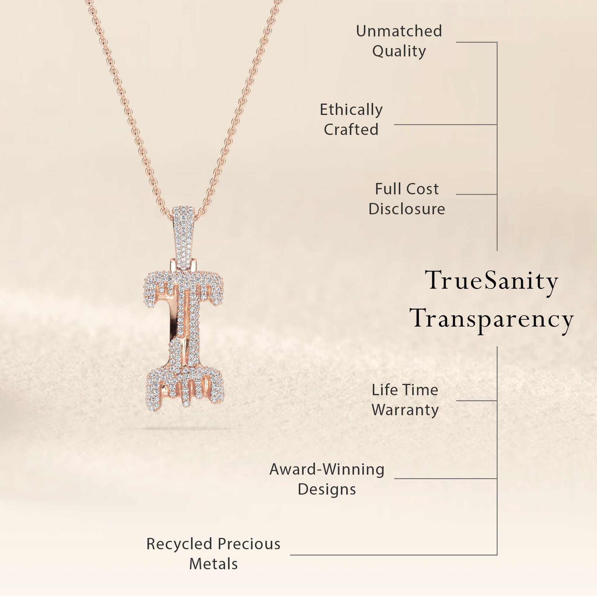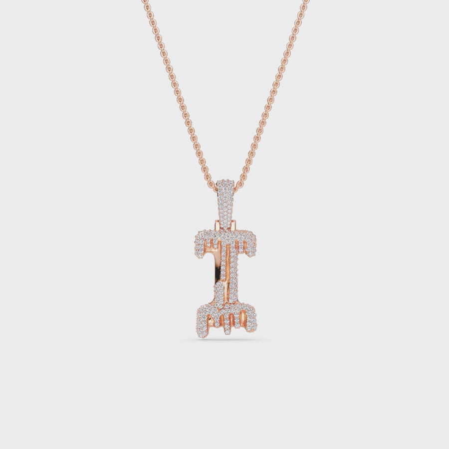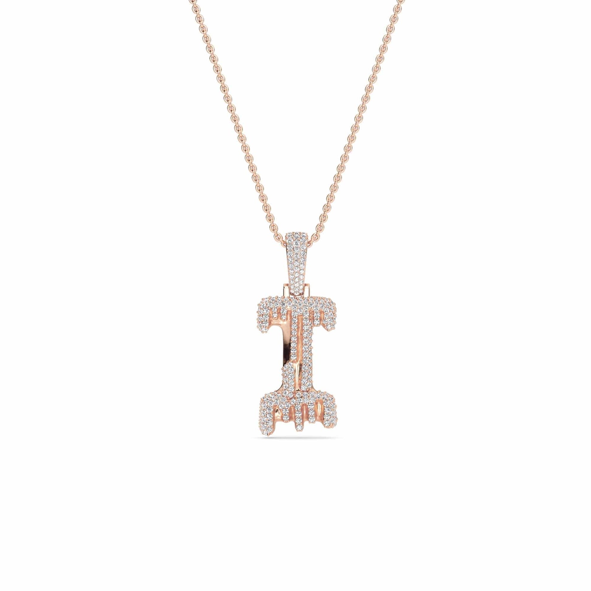 Elevate your style with the I Initial Dripping Diamond Pendant Necklace - Ignacio, adorned with 218 round diamonds in a striking drip design. Available in White Gold, Rose Gold, Yellow Gold, and Blackened Gold, this bold and personalized piece is perfect for making a sparkling statement.