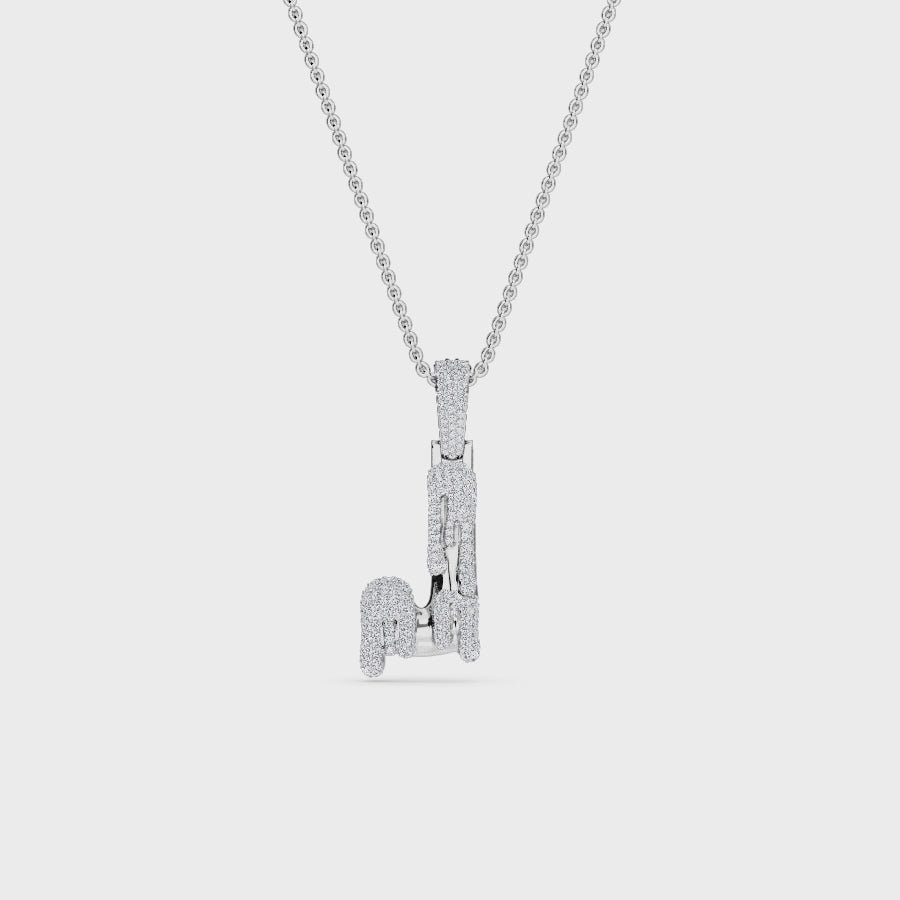 Make a bold statement with the J Initial Dripping Diamond Pendant Necklace - Jace, featuring 215 round diamonds in a striking drip-inspired design. Available in White Gold, Rose Gold, Yellow Gold, and Blackened Gold, this dazzling pendant is a perfect blend of modern luxury and personalized elegance.