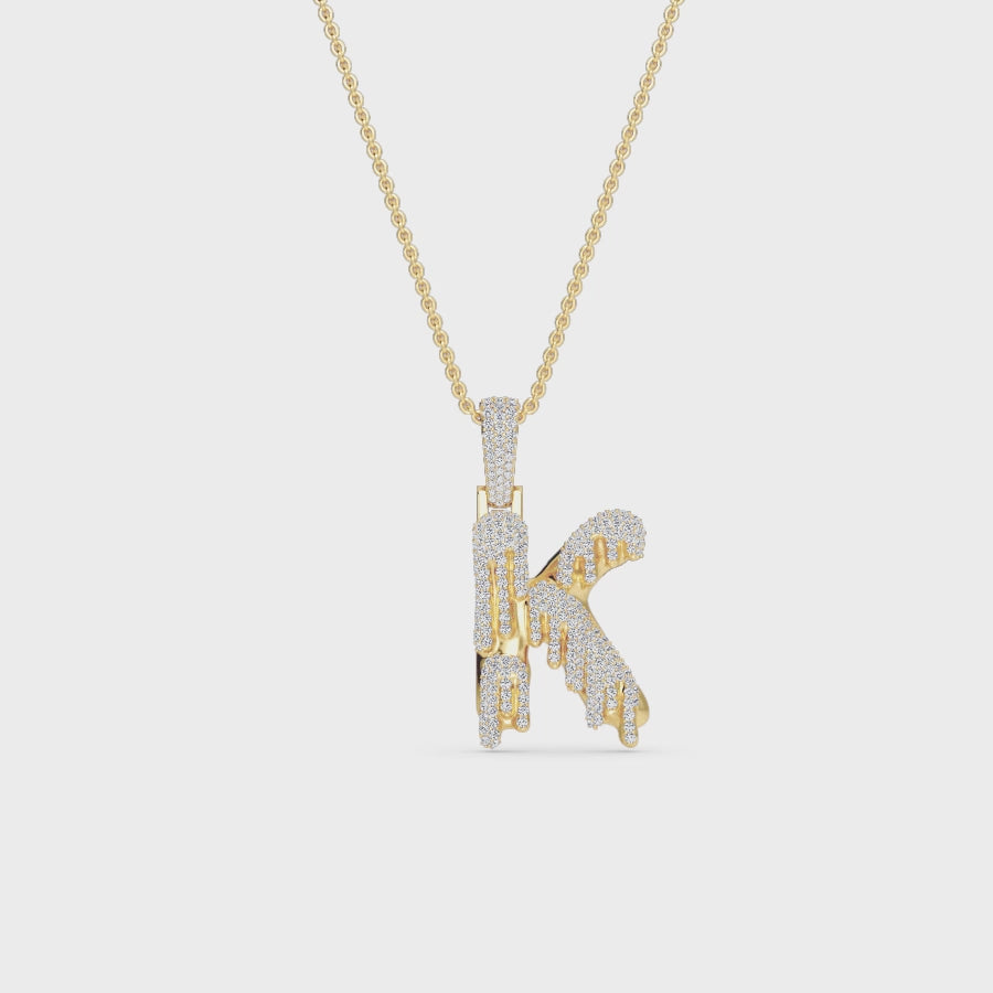K Initial Dripping Diamond Pendant Necklace - Kian