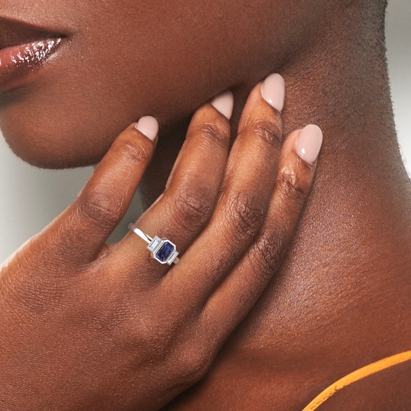 Ivy Lab Grown Alexandrite & Diamond Three-Stone Art Deco Ring
