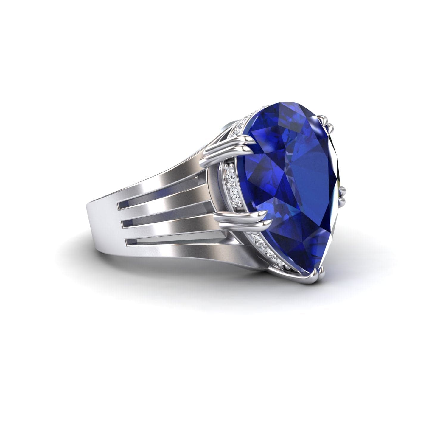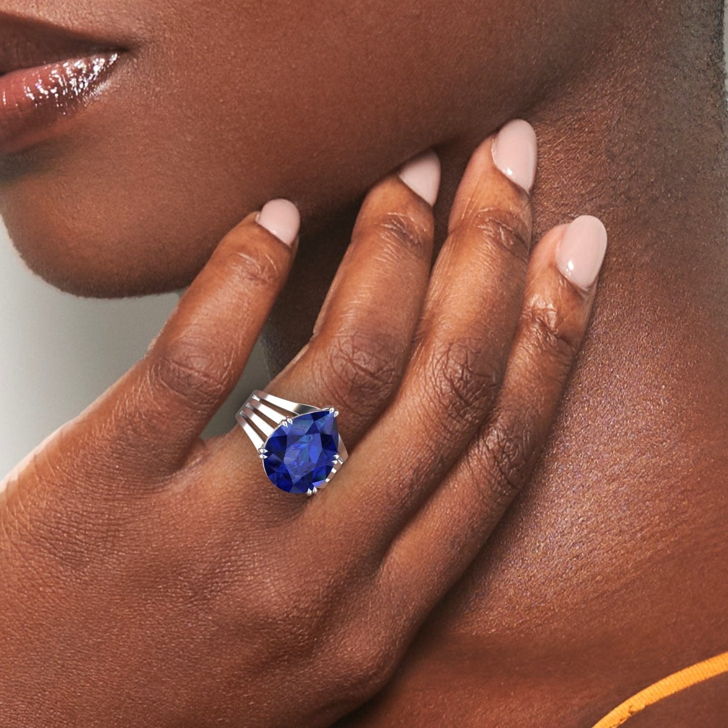 Elevate your style with the Lab Grown Blue Sapphire & Diamond Regal Ring - Anna, featuring a breathtaking pear-shaped blue sapphire surrounded by shimmering white diamonds. This elegant statement ring is expertly crafted in 14K gold, available in White Gold, Rose Gold, Yellow Gold, and Blackened Gold, making it a timeless choice for any occasion. Perfect for engagements, anniversaries, or a luxurious gift, this ring embodies sophistication and sustainability.