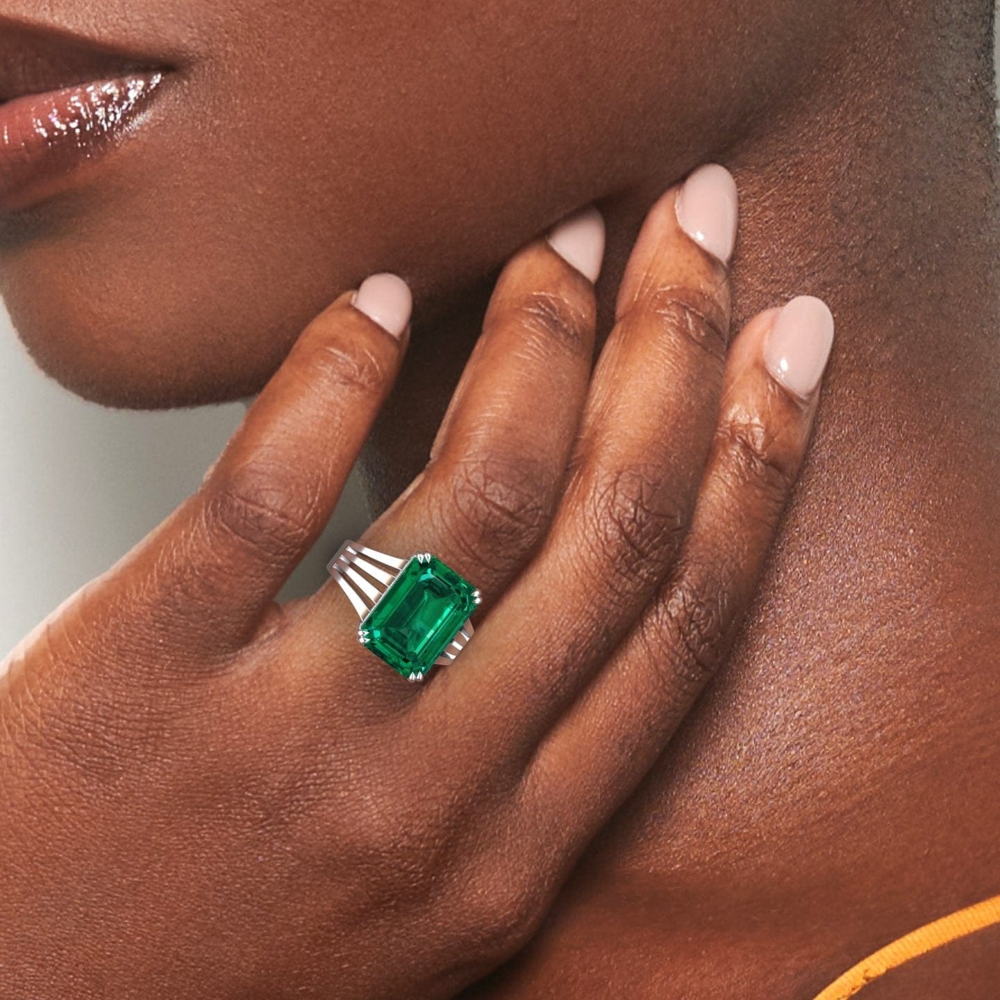 Lab Grown Emerald & Diamond Fashion Solitaire Ring - Tasmia