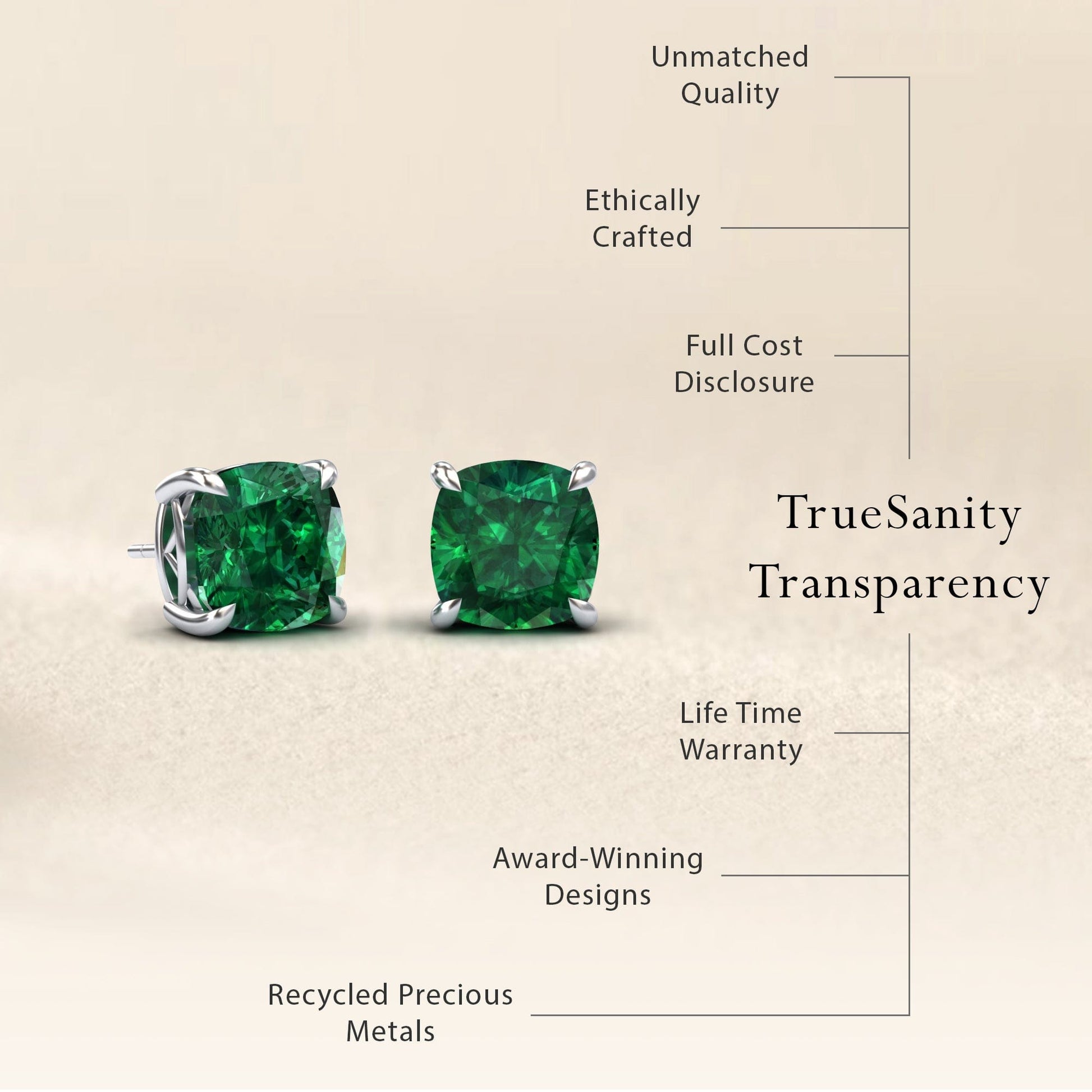Add a touch of timeless elegance with the Lab Grown Emerald Stud Earrings - Deborah, featuring cushion-cut lab-created emeralds that radiate a rich green brilliance. Set in your choice of White Gold, Rose Gold, Yellow Gold, or Blackened Gold, these exquisite studs blend sophistication and sustainability—perfect for both everyday wear and special occasions.
