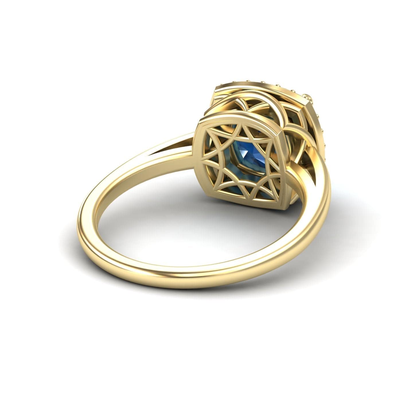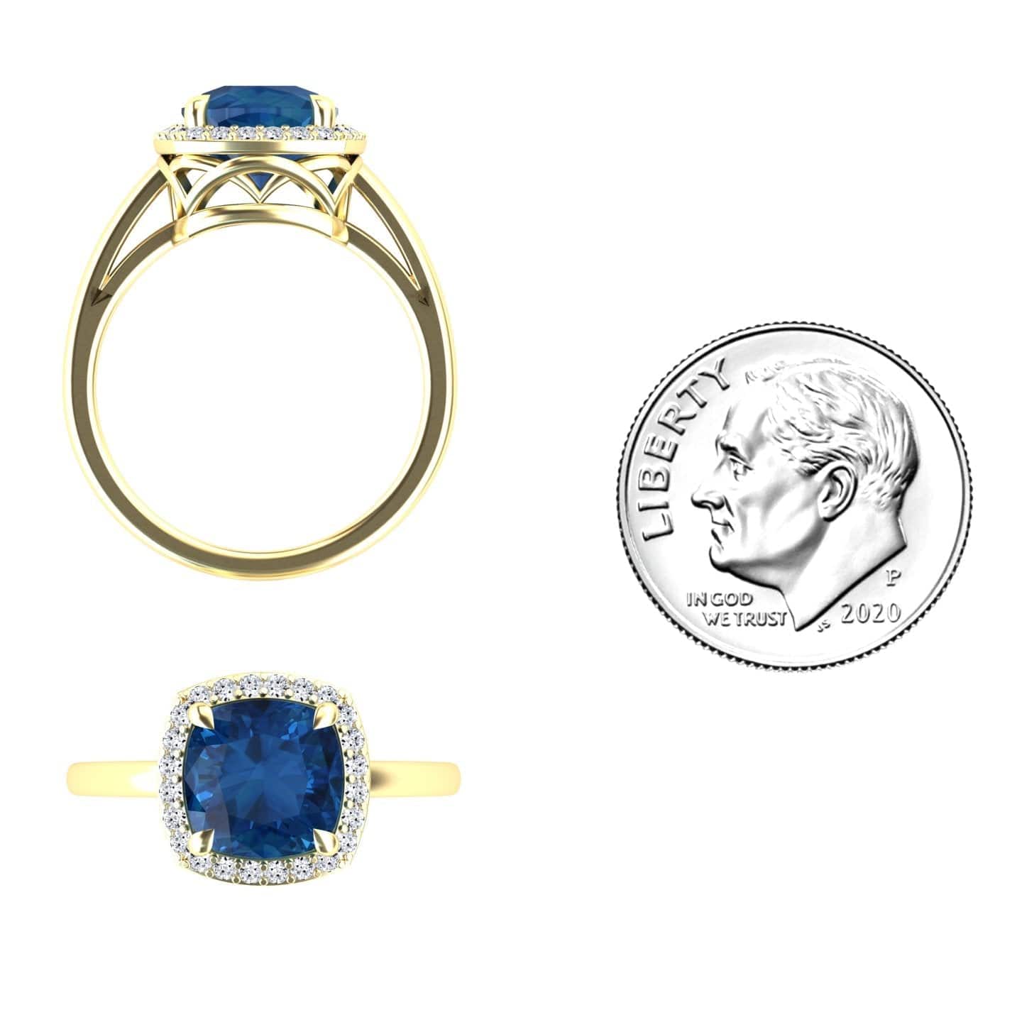 The Ziva London Blue Topaz & Diamond Halo Ring showcases a deep, ocean-hued topaz surrounded by a glittering halo of diamonds, offering refined elegance and bold color. Available in 14K White, Rose, Yellow, or Blackened Gold, this gemstone ring is perfect for special occasions or statement everyday wear.