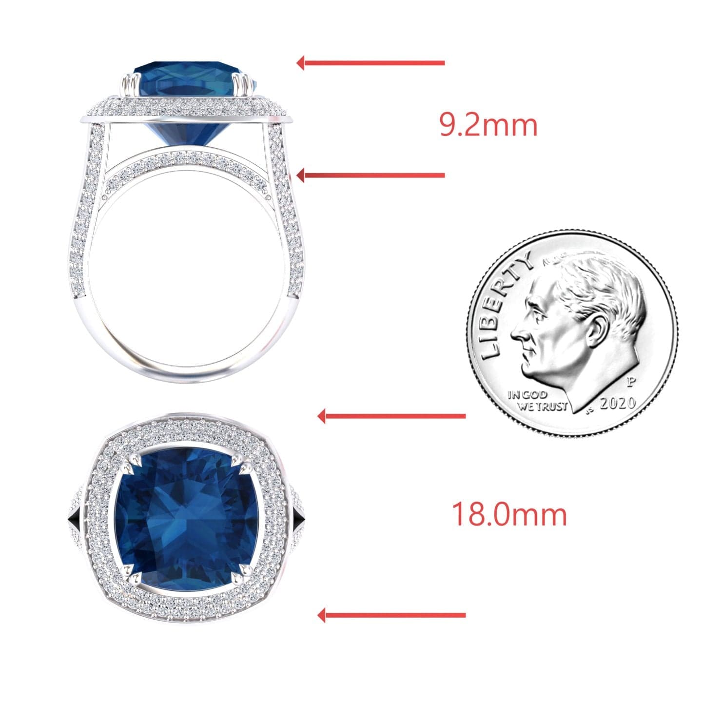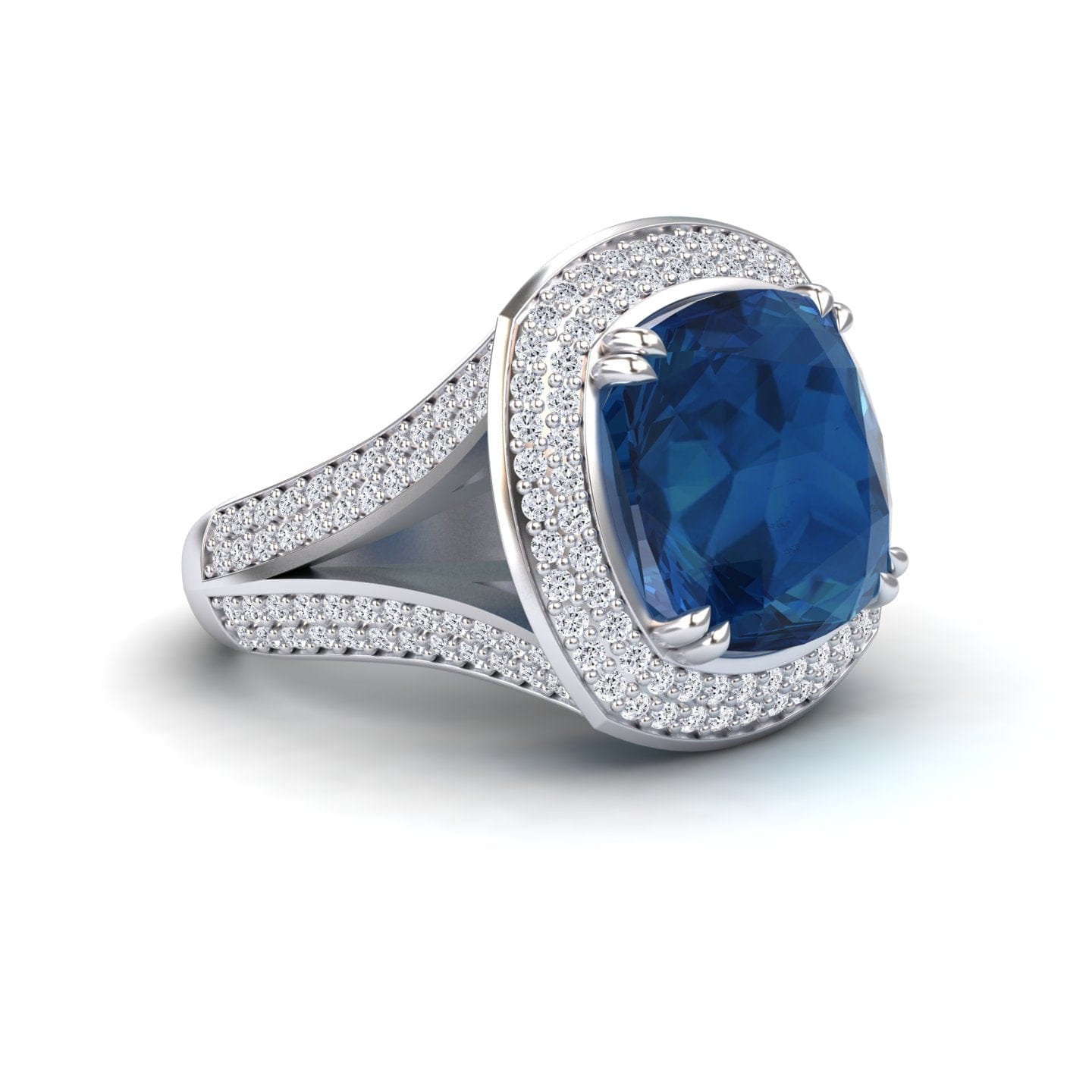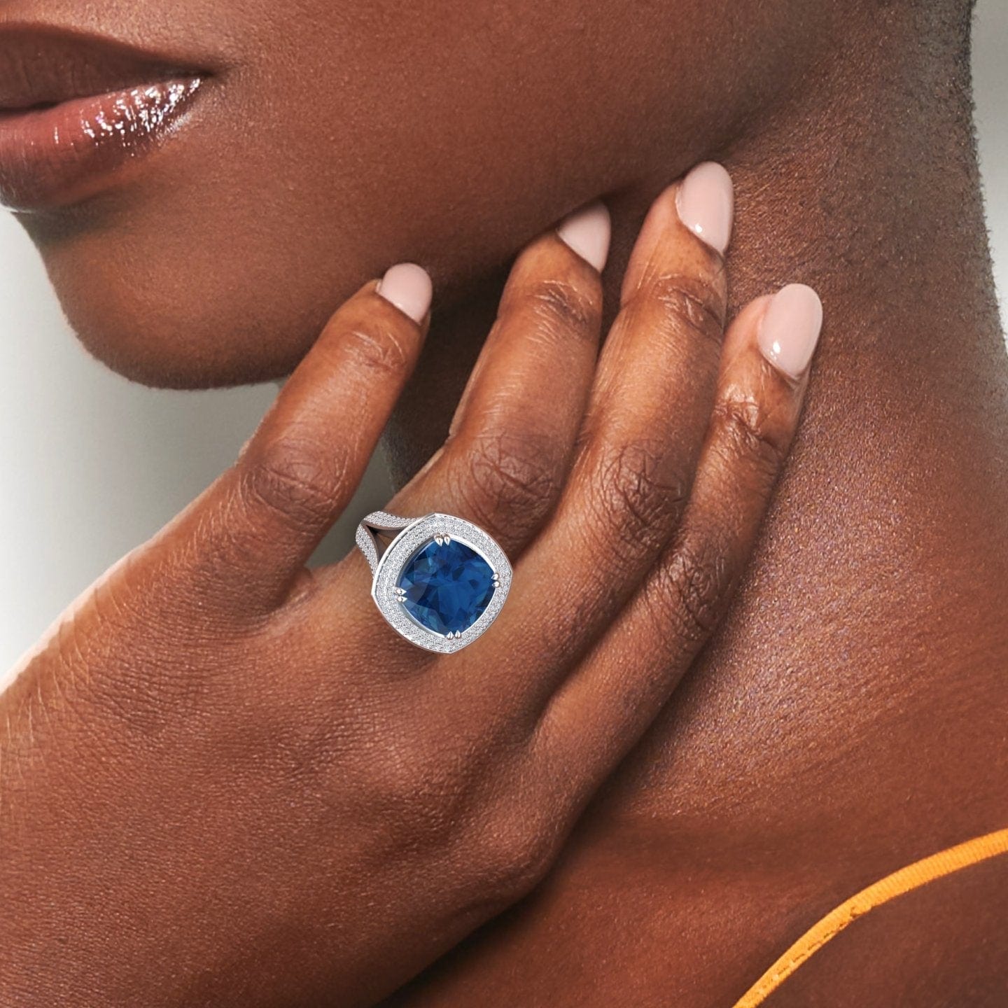 London Blue Topaz & Diamond Halo Statement Ring - Pooja