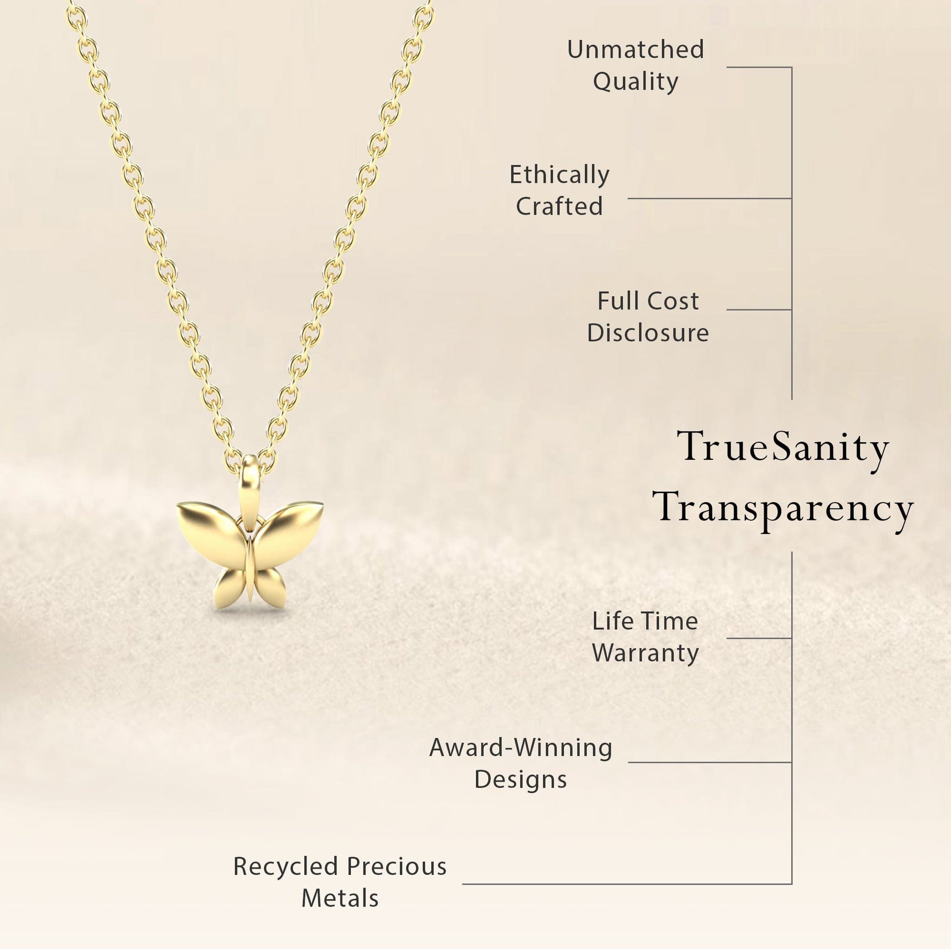 Legal Disclaimer: The information regarding our costing, material sourcing, craftsmanship, and other operational details is provided for transparency purposes only. While True Sanity strives for utmost accuracy and diligently verifies all data, this information is not intended as a legally binding representation or warranty. Market prices for precious metals (including gold) and diamonds are subject to significant and rapid fluctuations, which are beyond our control. All cost breakdowns and appraisals are based on market conditions at the time of calculation. Furthermore, despite rigorous quality control and data verification processes, human error remains a possibility. True Sanity reserves the right to correct any errors, inaccuracies, or omissions, and we will do so promptly upon identification. This disclosure does not create any contractual obligations beyond those expressly set forth in our official terms of sale, warranty, and return policies. Your use of our website and purchase of our products are subject to our full Terms and Conditions.
