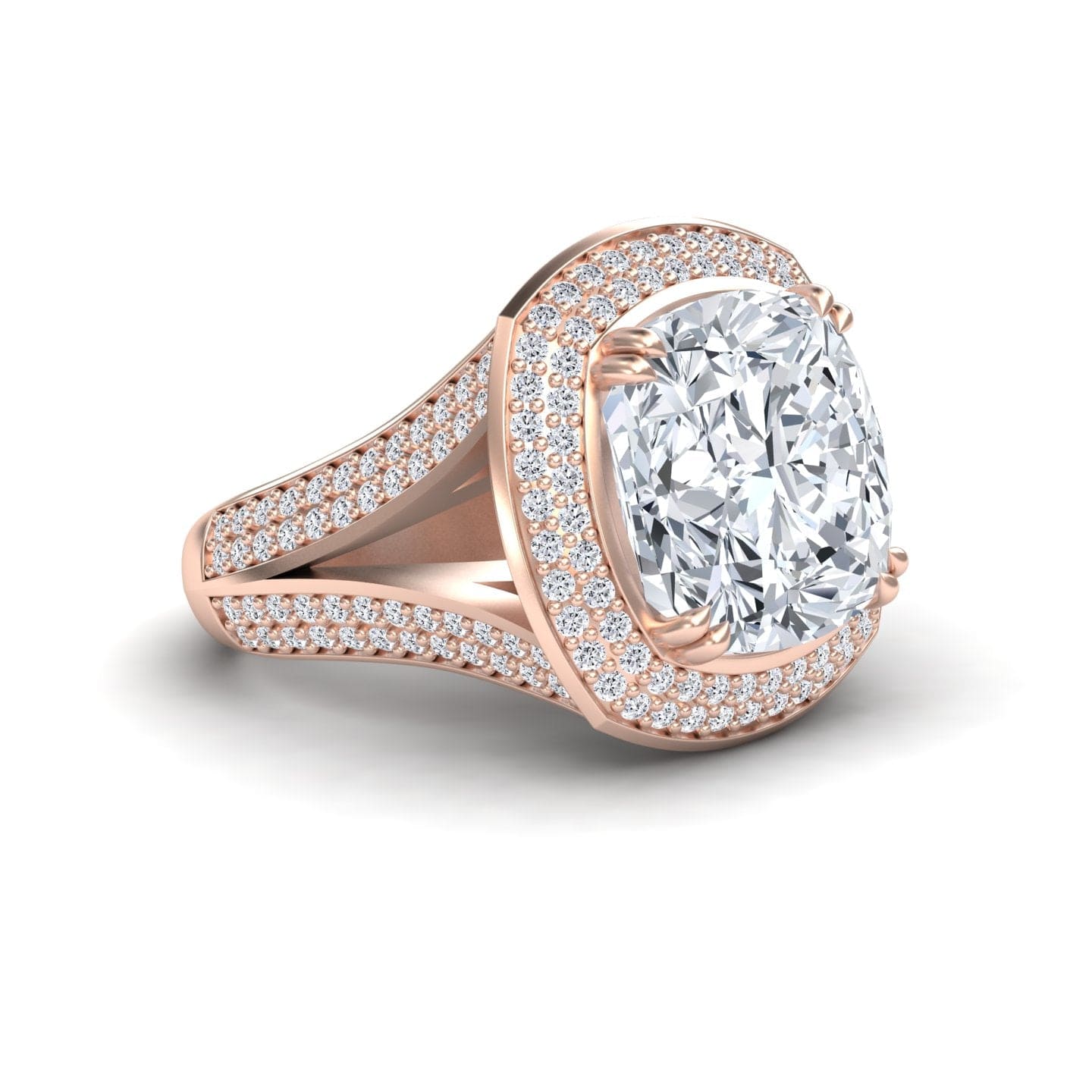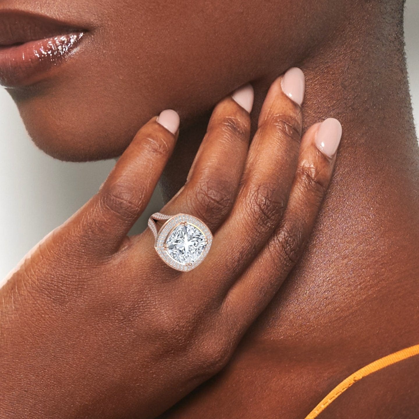 Lab Grown Moissanite & Diamond Halo Statement Ring - Pooja