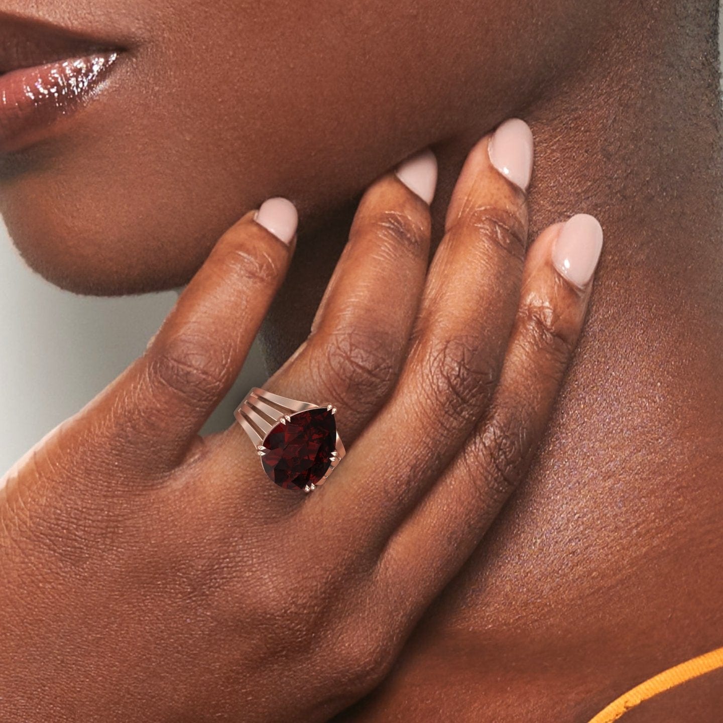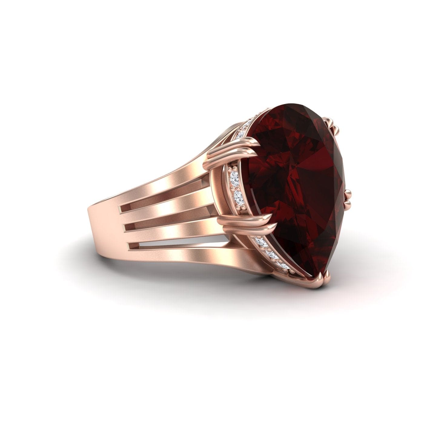 Elevate your style with the Garnet & Diamond Regal Ring - Anna, featuring a striking pear-shaped garnet complemented by dazzling white diamonds. Expertly crafted in 14K White Gold, Rose Gold, Yellow Gold, or Blackened Gold, this bold and sophisticated design captures the fiery allure of garnet, making it a perfect statement piece for any occasion.