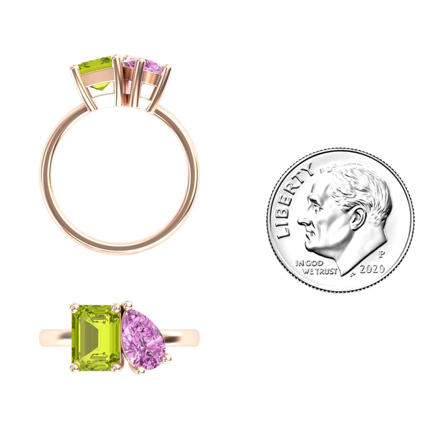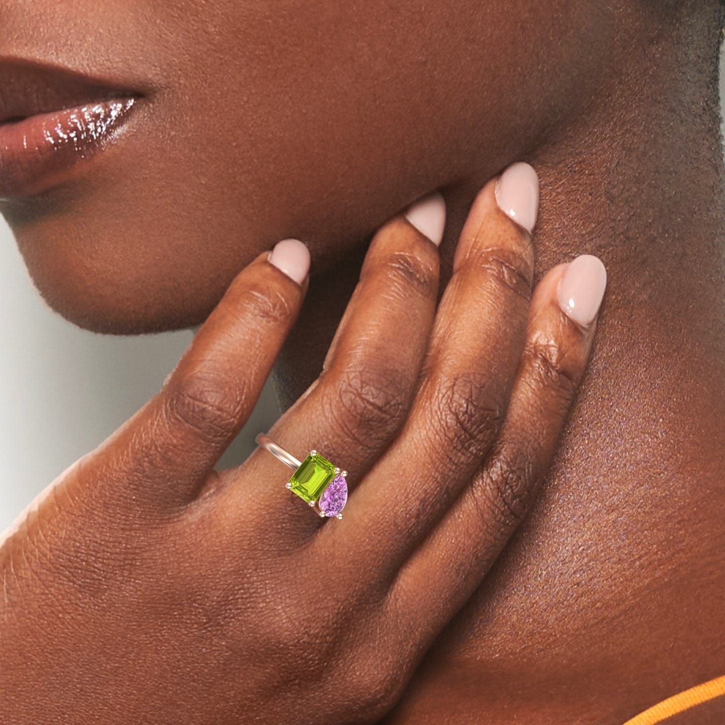 Ellen Peridot & Pink Sapphire Toi et Moi Cocktail Ring