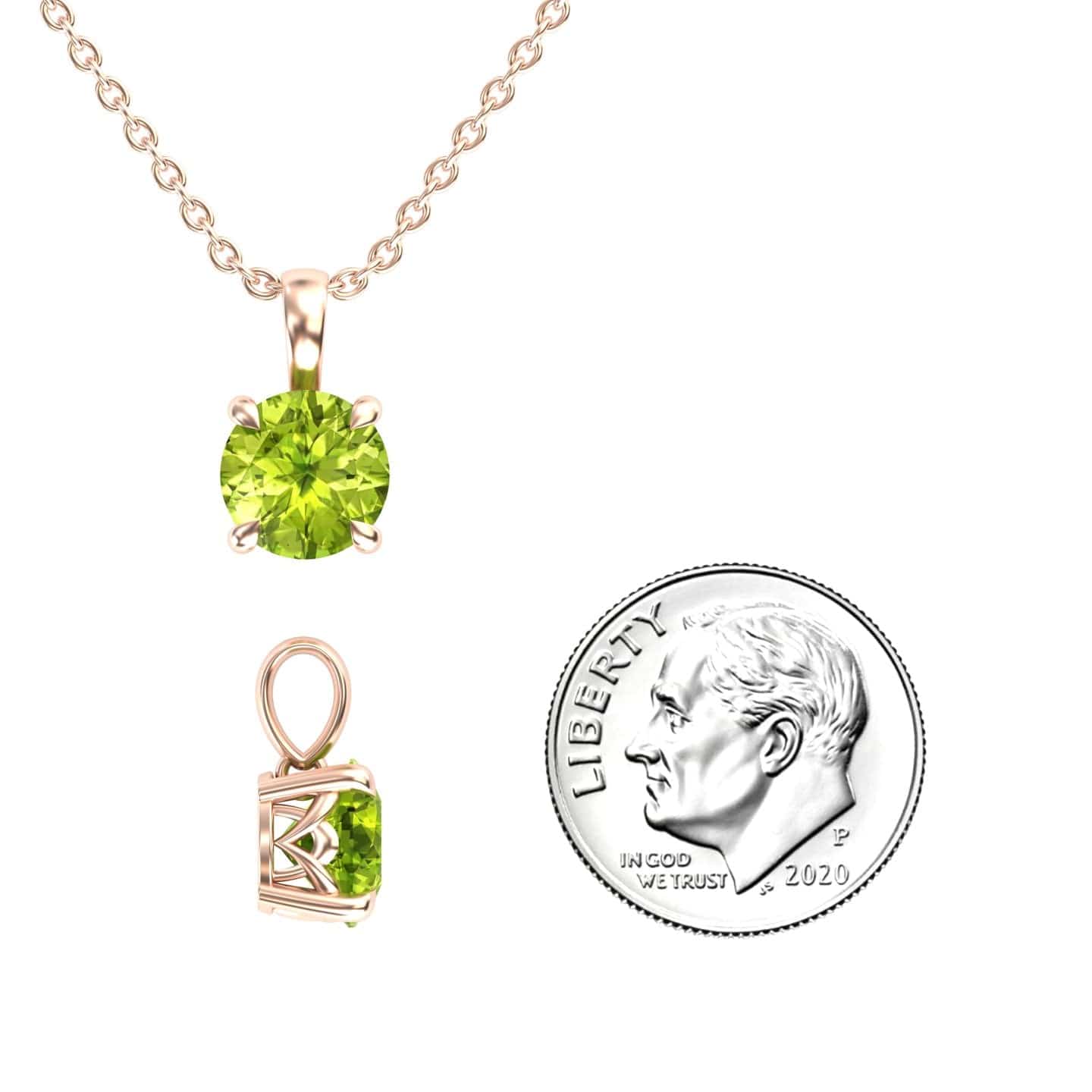 Bright and refreshing, the Peridot Solitaire Necklace - Aaradhya features a dazzling round-cut peridot in a timeless four-prong setting. Symbolizing prosperity and positivity, this vibrant green gemstone adds a unique charm to any look. Available in 14K White Gold, Rose Gold, Yellow Gold, and Blackened Gold, this elegant pendant is a perfect addition to your jewelry collection.