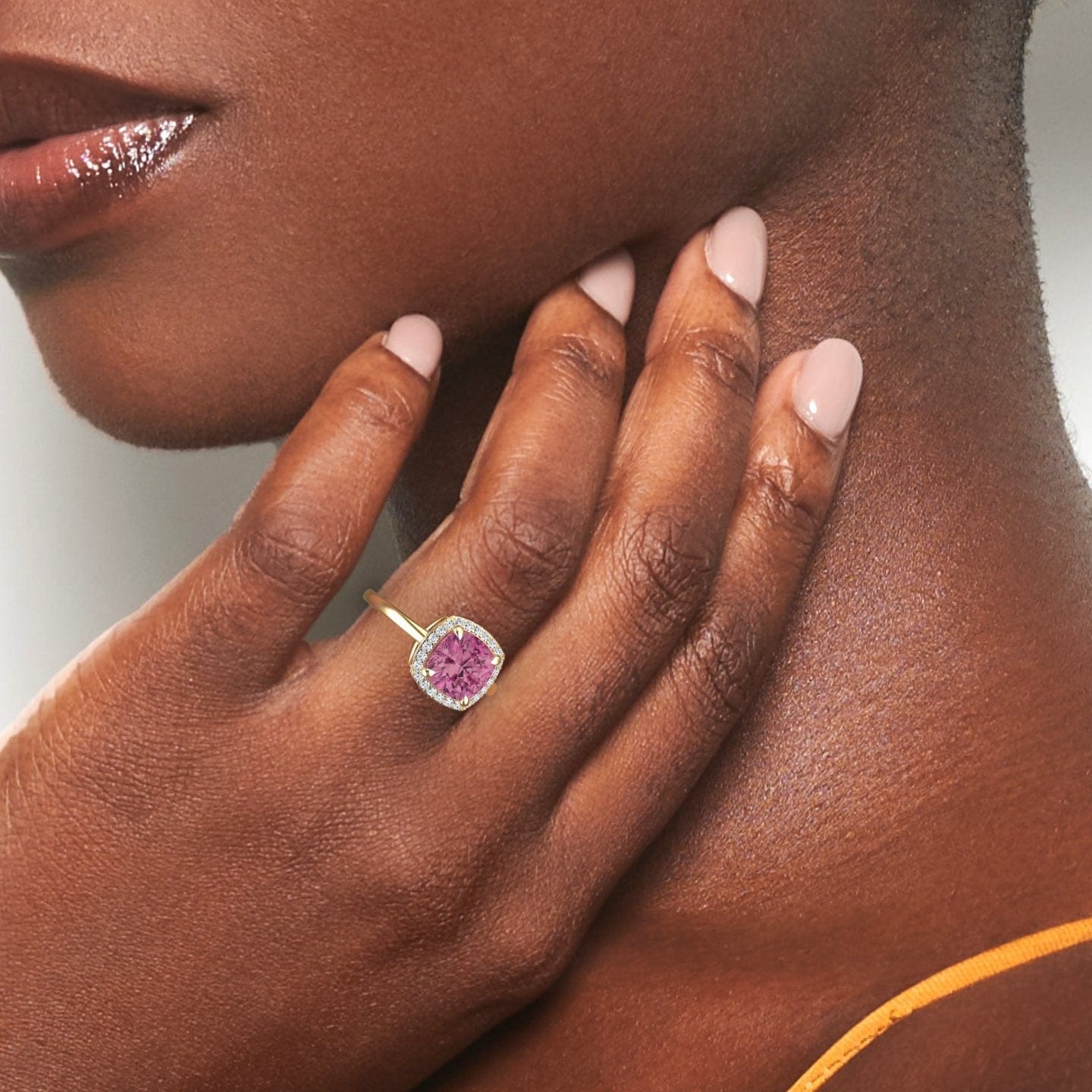 Pink Tourmaline & Diamond Halo Ring - Ziva