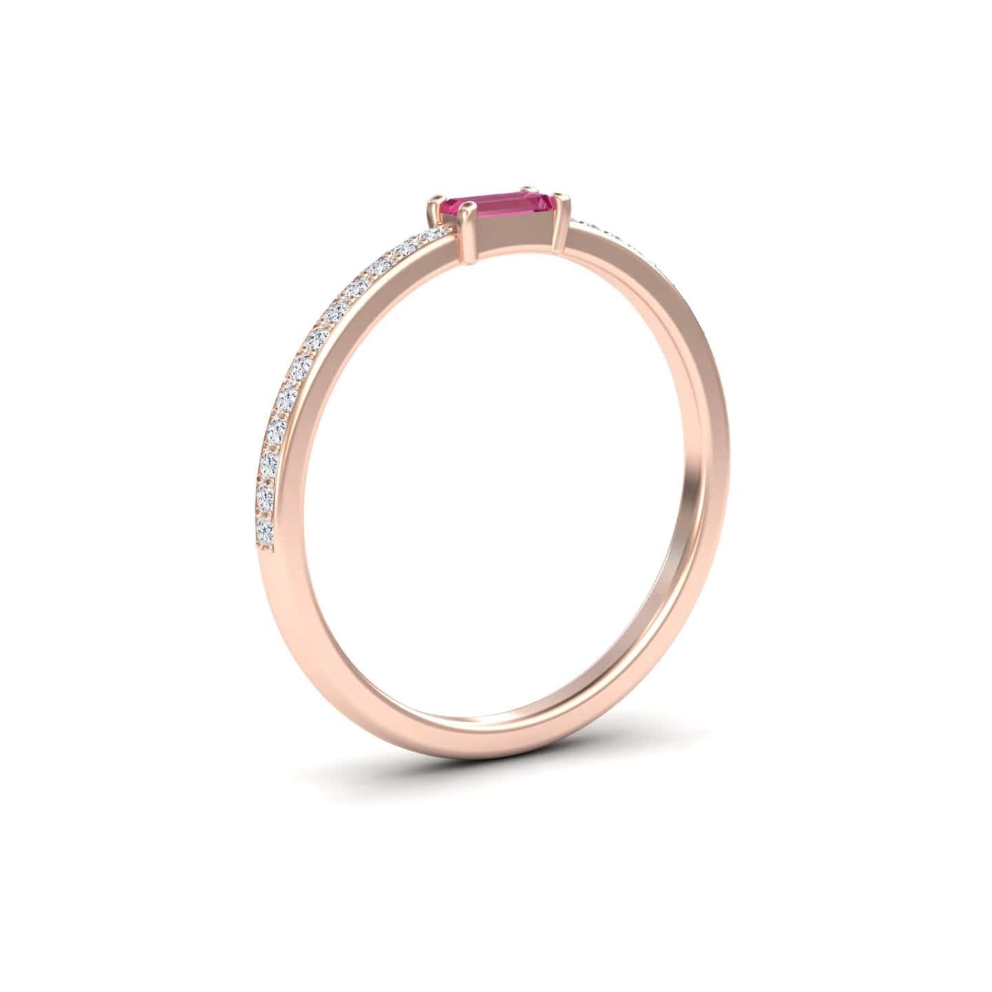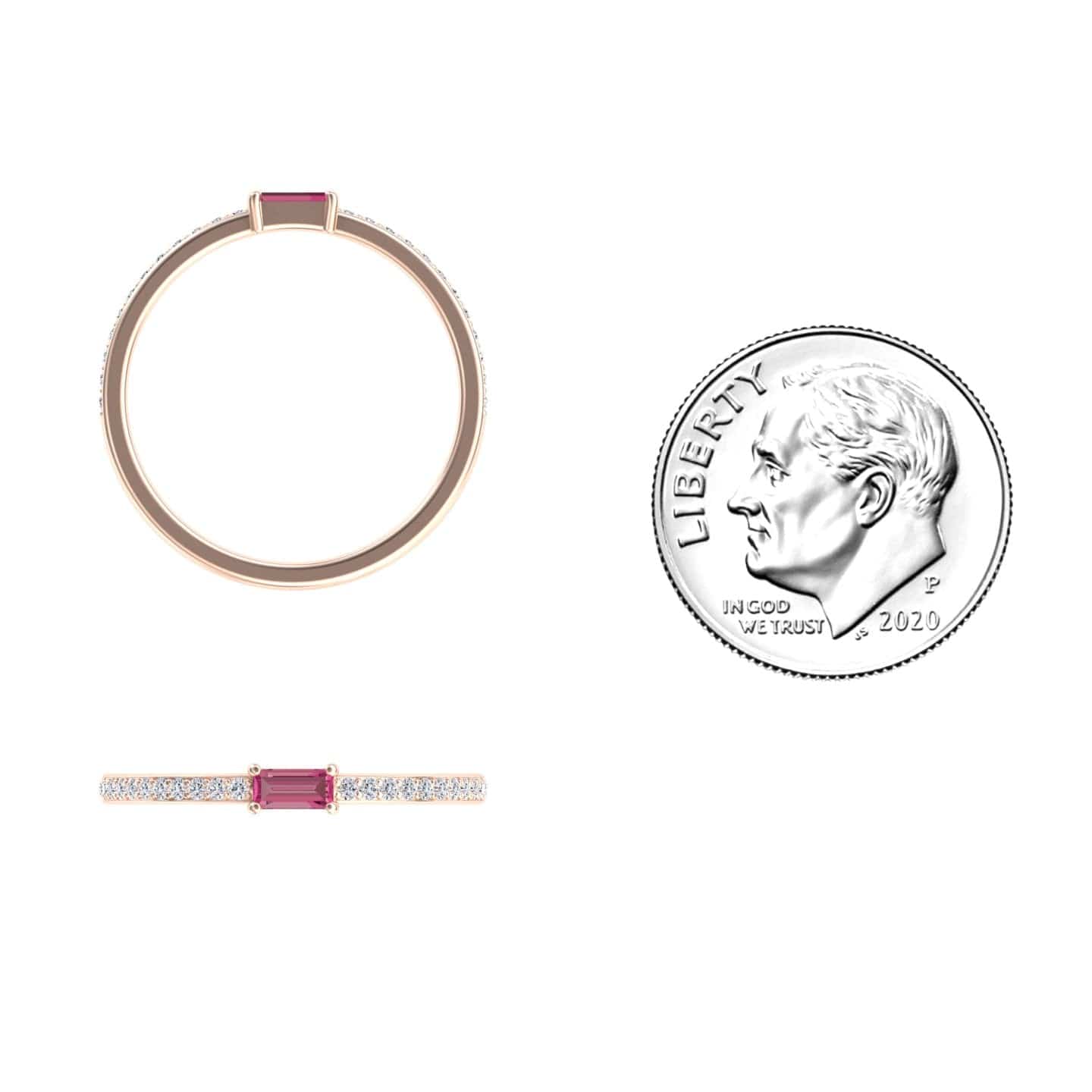Delicate yet bold, the Pink Tourmaline & Diamond Pave Ring - Dia showcases radiant baguette-cut pink tourmaline stones complemented by shimmering diamond accents in a sleek pave setting. Crafted in 14K gold, this elegant band is perfect for stacking or wearing as a statement piece. Available in White Gold, Rose Gold, Yellow Gold, and Blackened Gold.