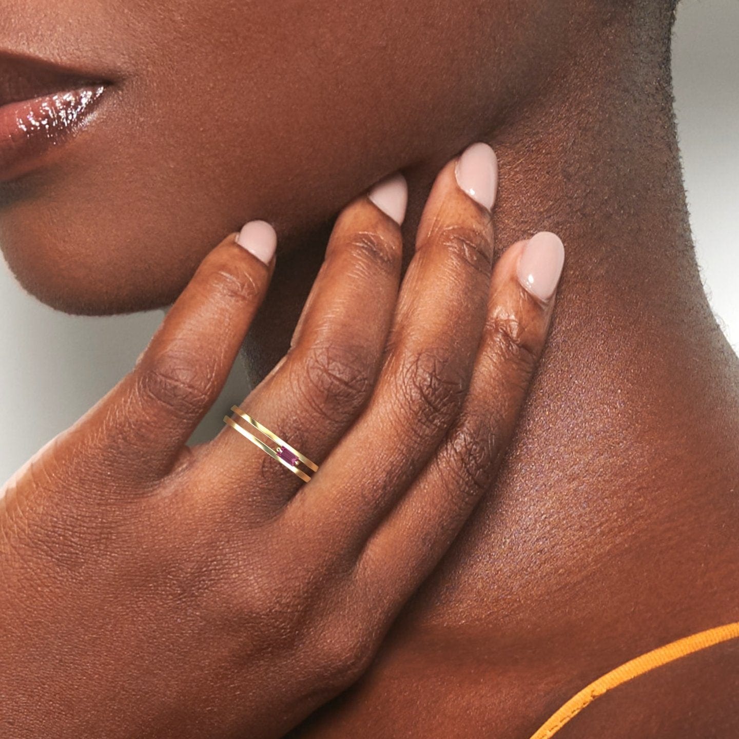 Pink Tourmaline Minimalist Double Band Ring - Alia