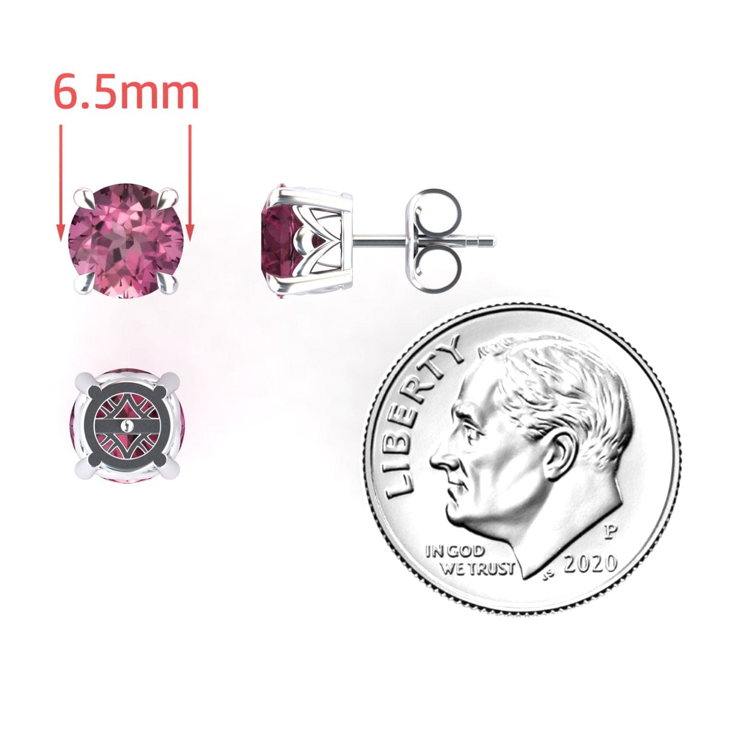 Lucy 6.5mm Round Pink Tourmaline Solitaire Stud Earrings