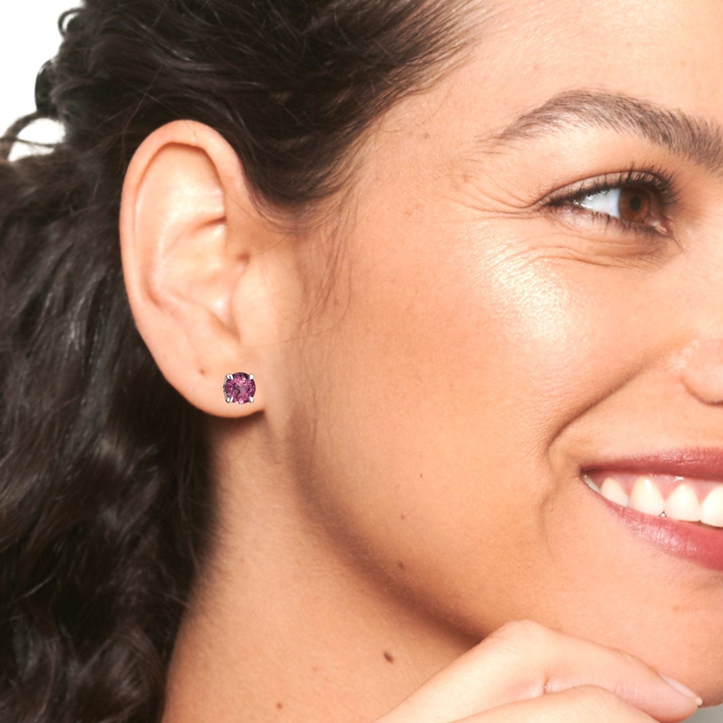 Pink Tourmaline Solitaire Stud Earrings - Lucy
