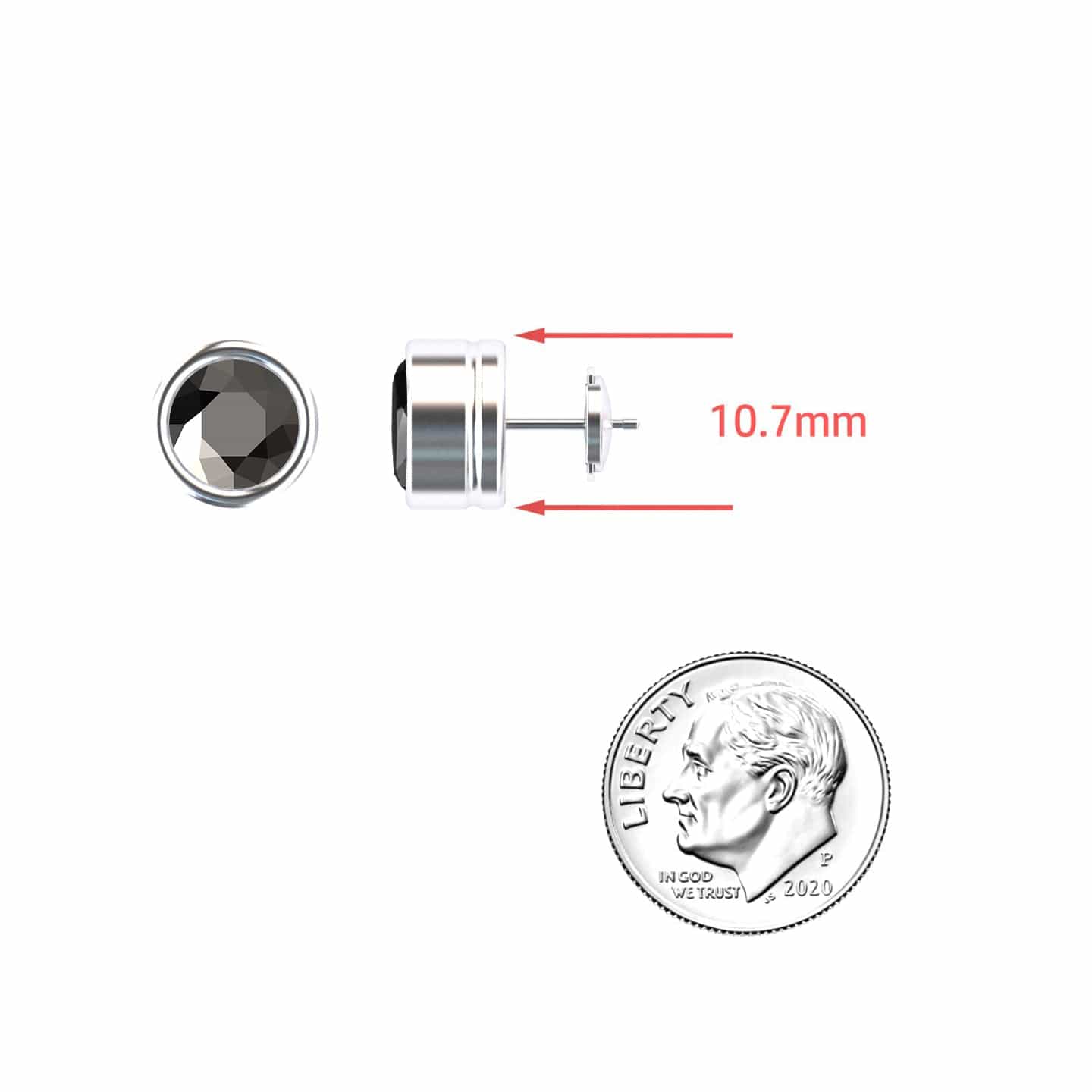 Black Diamond 10.7mm Single Stud Earrings - Bezel Set - Ishanvi